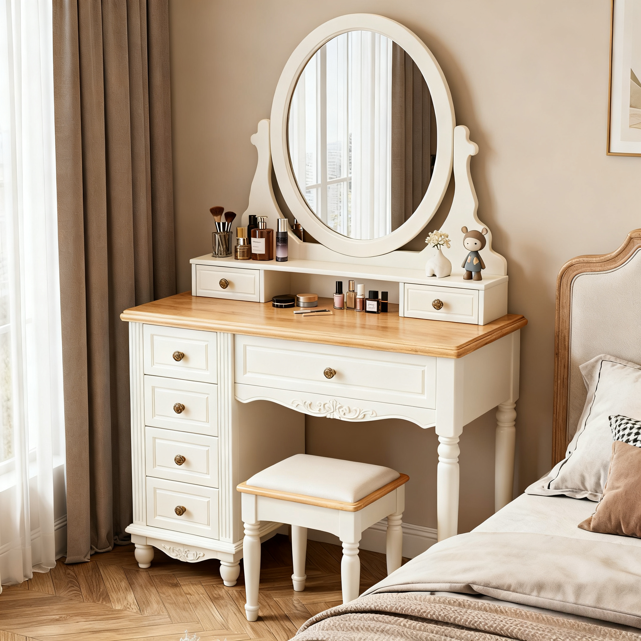 BuffetRangement chic pour cosmétiques, transformant votre espace maquillage en un sanctuaire élégant.