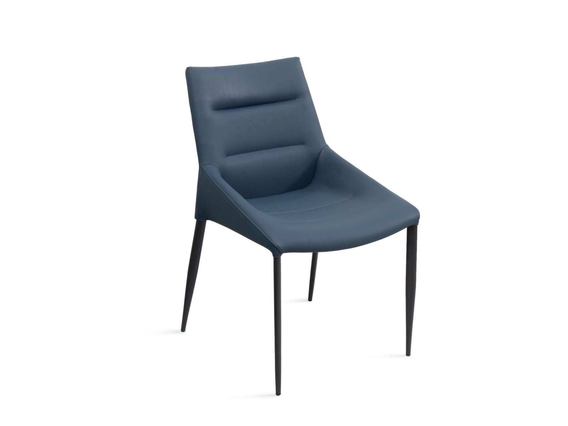 La chaise de salle à manger Kat est dotée de pieds en similicuir bleu marine et d'acier poncé noir.