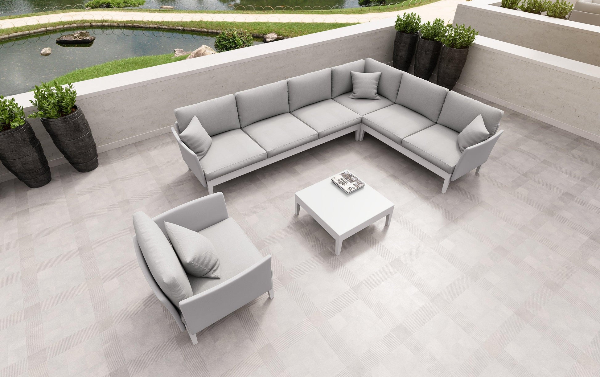 • Maille gris clair traitée UV pour accoudoir/dossier