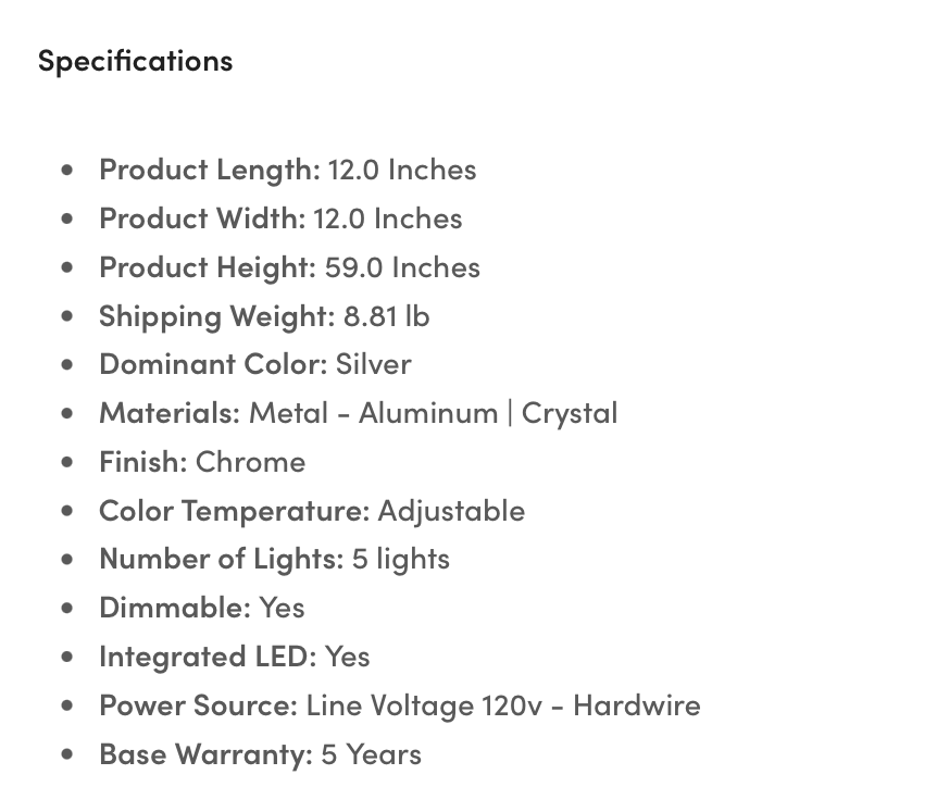 Doté de la technologie LED intégrée, le lustre Elysian est à la fois économe en énergie et gradable, vous permettant de créer l'ambiance idéale en toute occasion. Veuillez noter qu'un variateur séparé est requis et n'est pas inclus.