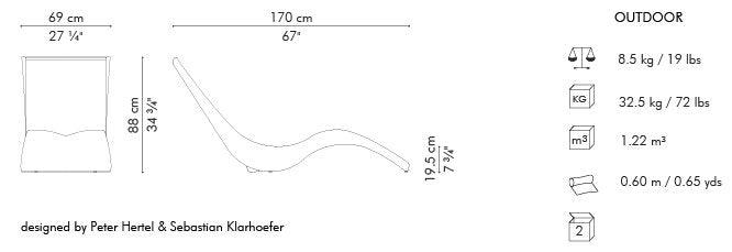 Designed by Peter Hertel and Sebastian Klarhoefer, Mermaid is a sleek head turner. Made of woven polyethylene over a powder-coated aluminum frame, the chaise lounge, complemented by the end table, offers hours of relaxation.