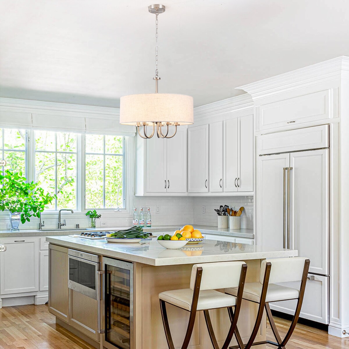 Doté d'un abat-jour tambour en lin, ce lustre moderne met en valeur des éléments de style côtier. Cette suspension rustique est composée d'abat-jour en métal et en lin, et le contraste entre la couleur et la texture de l'abat-jour et des éléments métalliques crée un effet visuel ludique. Ce style est parfait pour les escapades côtières, les lofts décontractés et les cottages rustiques. Une fois installé, il peut accueillir cinq ampoules chandelier jusqu'à 60 W (ampoules non incluses), créant ainsi une ambiance chaleureuse dans votre intérieur.