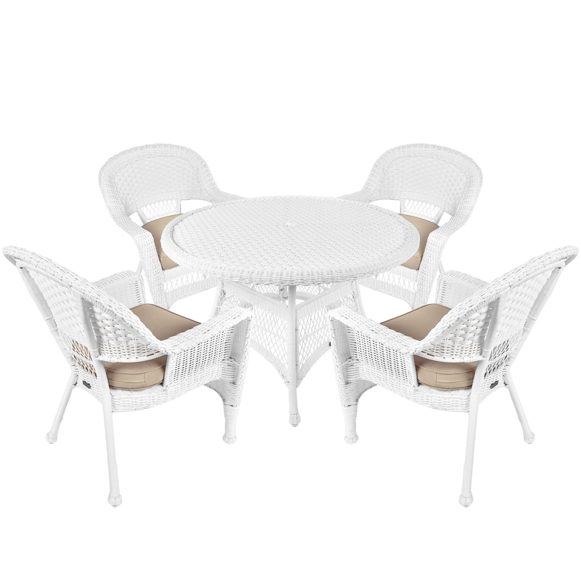 Ensemble de salle à manger en résine tressée blanche 5 pièces