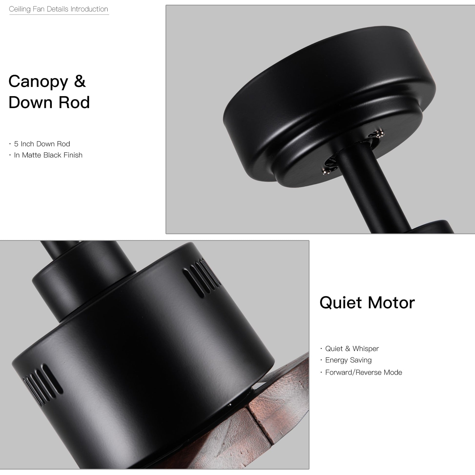 Ventilateur de plafond moderne en bois massif/ABS de 52 pouces avec télécommande (sans lumière), 6 vitesses de vent, flux d'air réversible