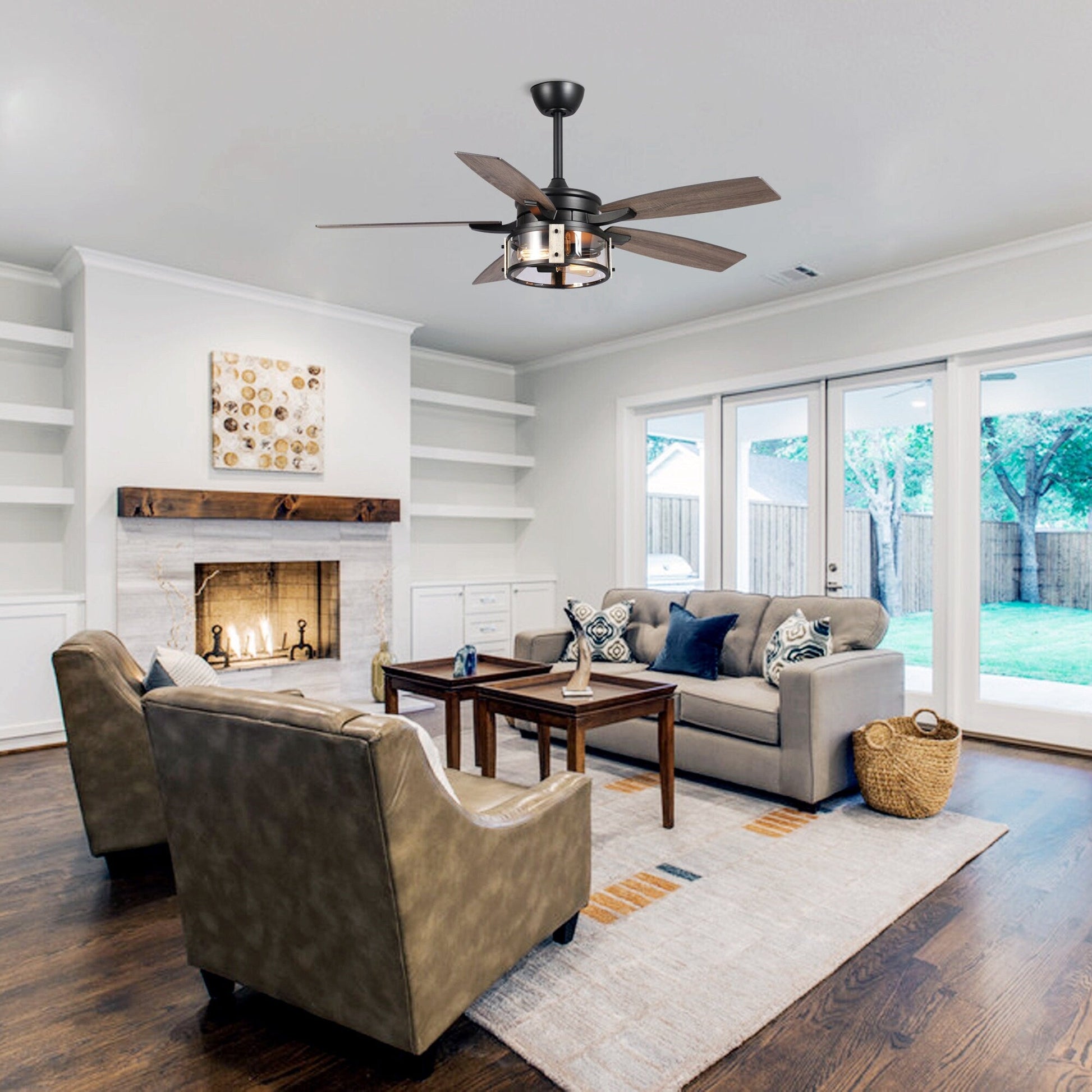 Ventilateur de plafond d'intérieur rustique en bois noir à 5 pales avec télécommande