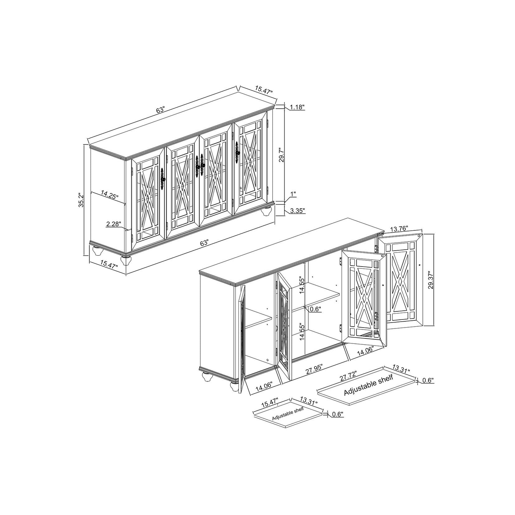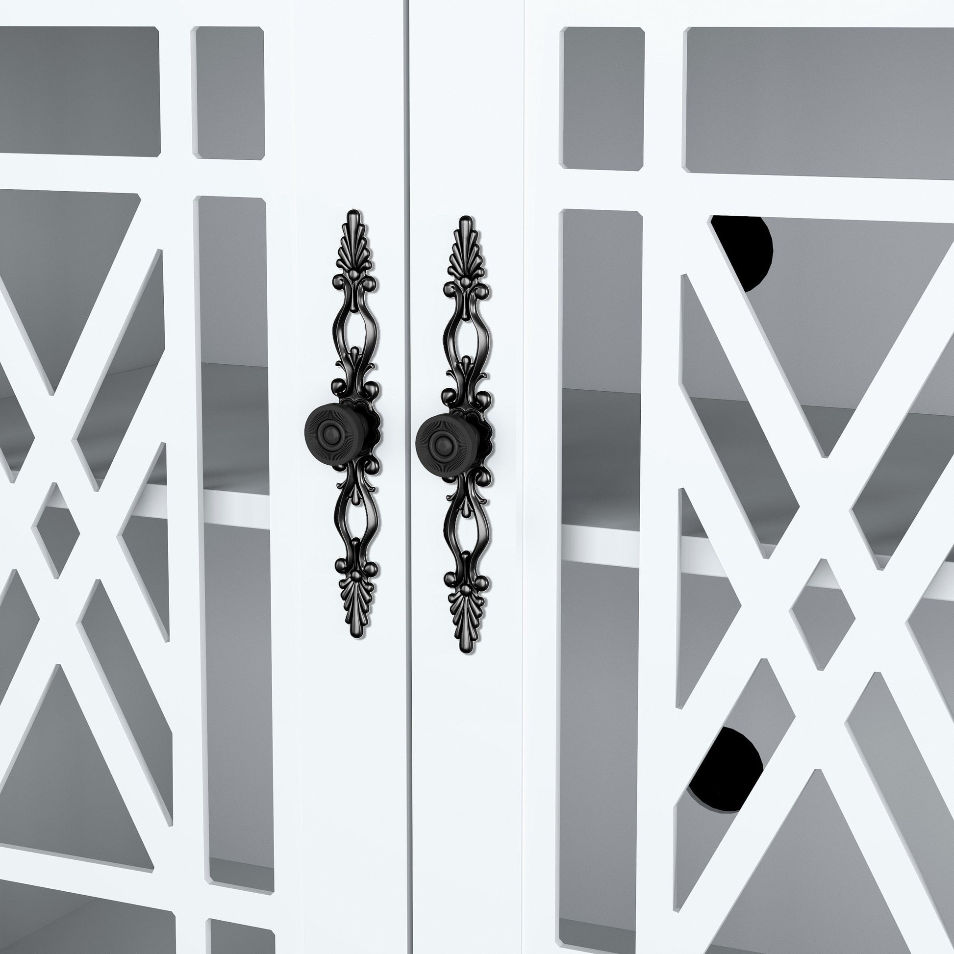Ajoutez une touche de charme vintage à votre intérieur avec ce meuble de rangement unique et fonctionnel. Fabriqué en bois massif et MDF de haute qualité pour une construction durable, ce meuble est doté de quatre portes vitrées avec un revêtement en bois raffiné et de poignées métalliques de style vintage. Doté d'étagères réglables, ce meuble offre un vaste espace de rangement personnalisable selon vos besoins. Utilisez-le comme buffet dans la cuisine ou la salle à manger, comme console dans le salon ou comme solution de rangement dans l'entrée. Ses charnières à montage rapide facilitent le montage.
