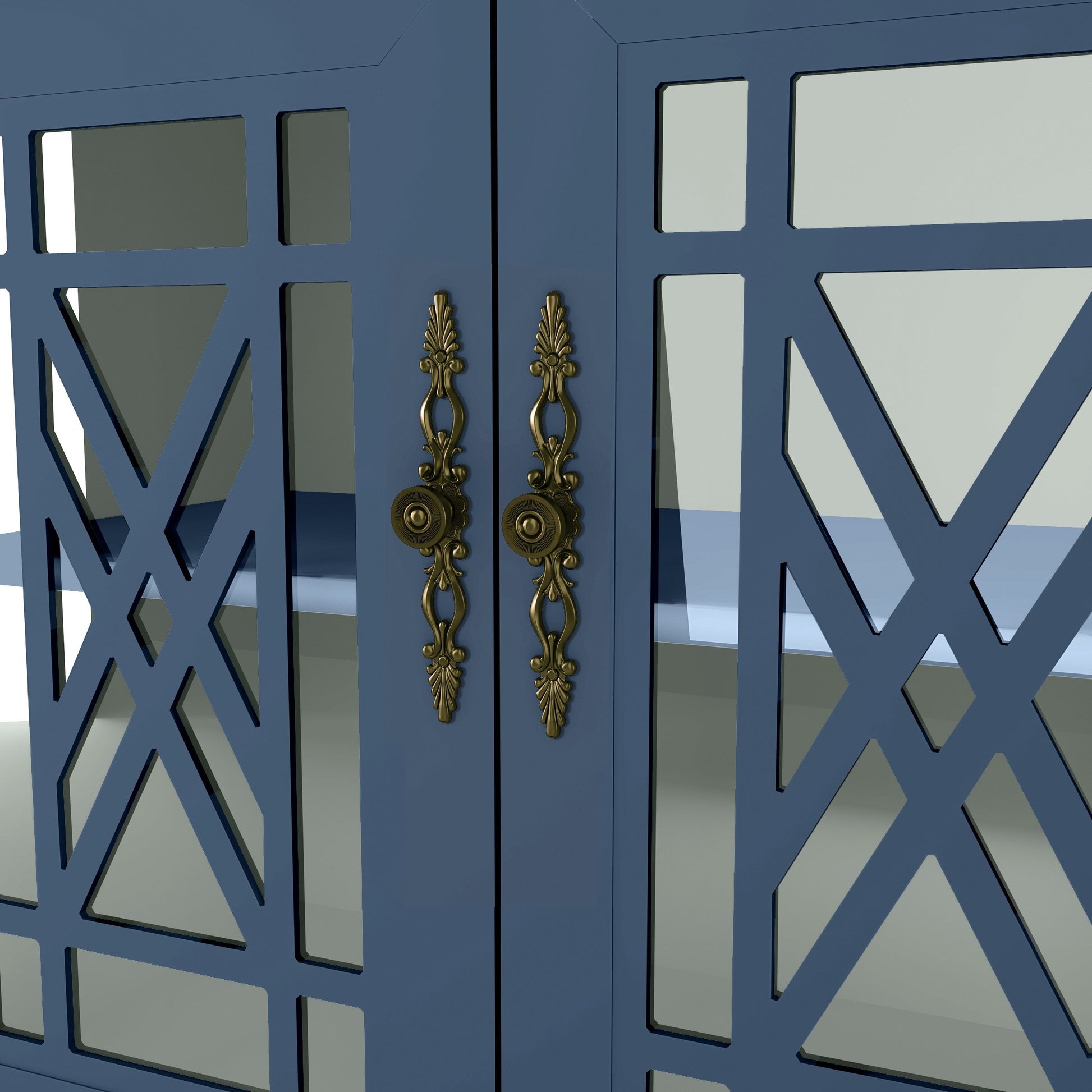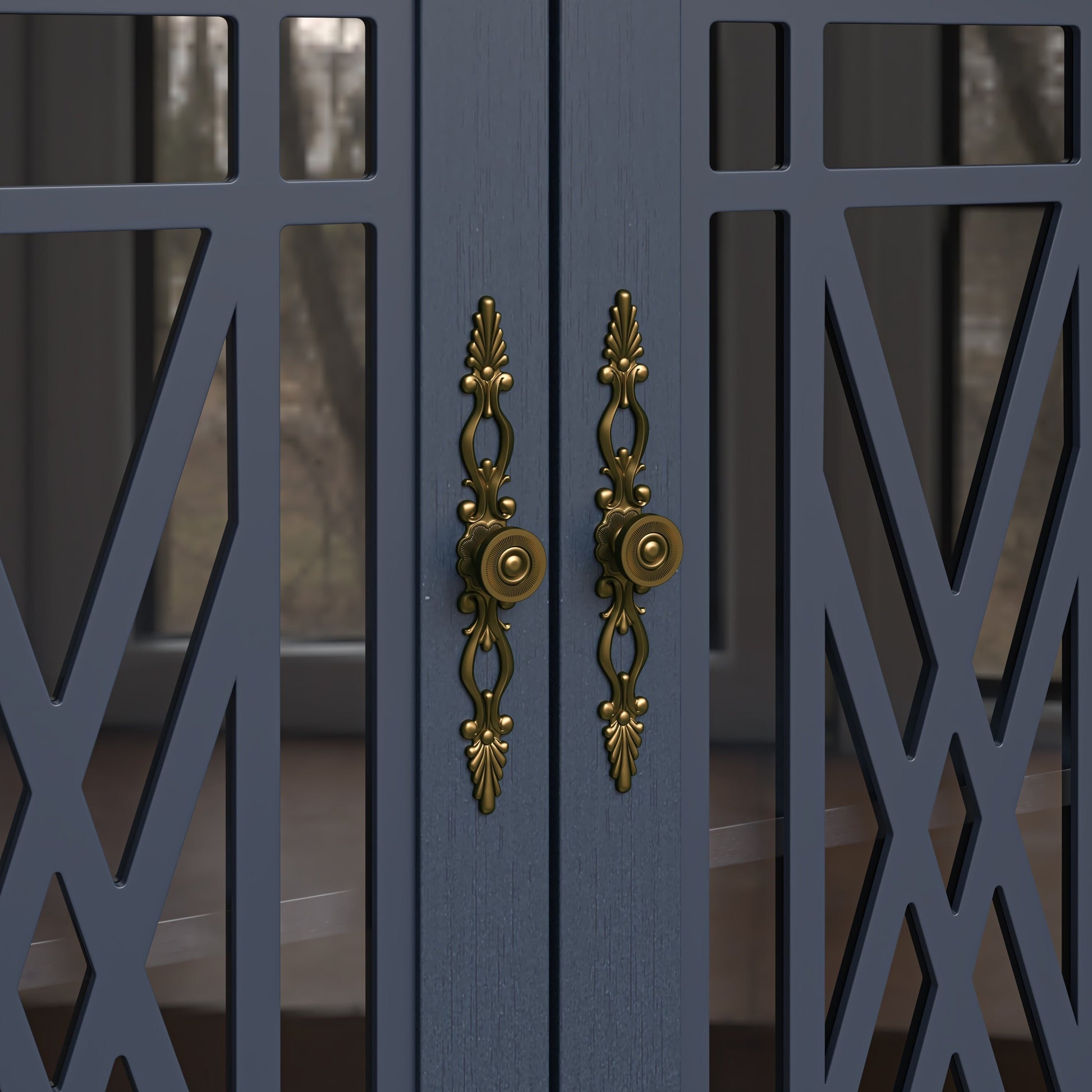 - Quatre portes à panneaux de verre avec une superposition de bois complexe et des poignées en métal de style vintage