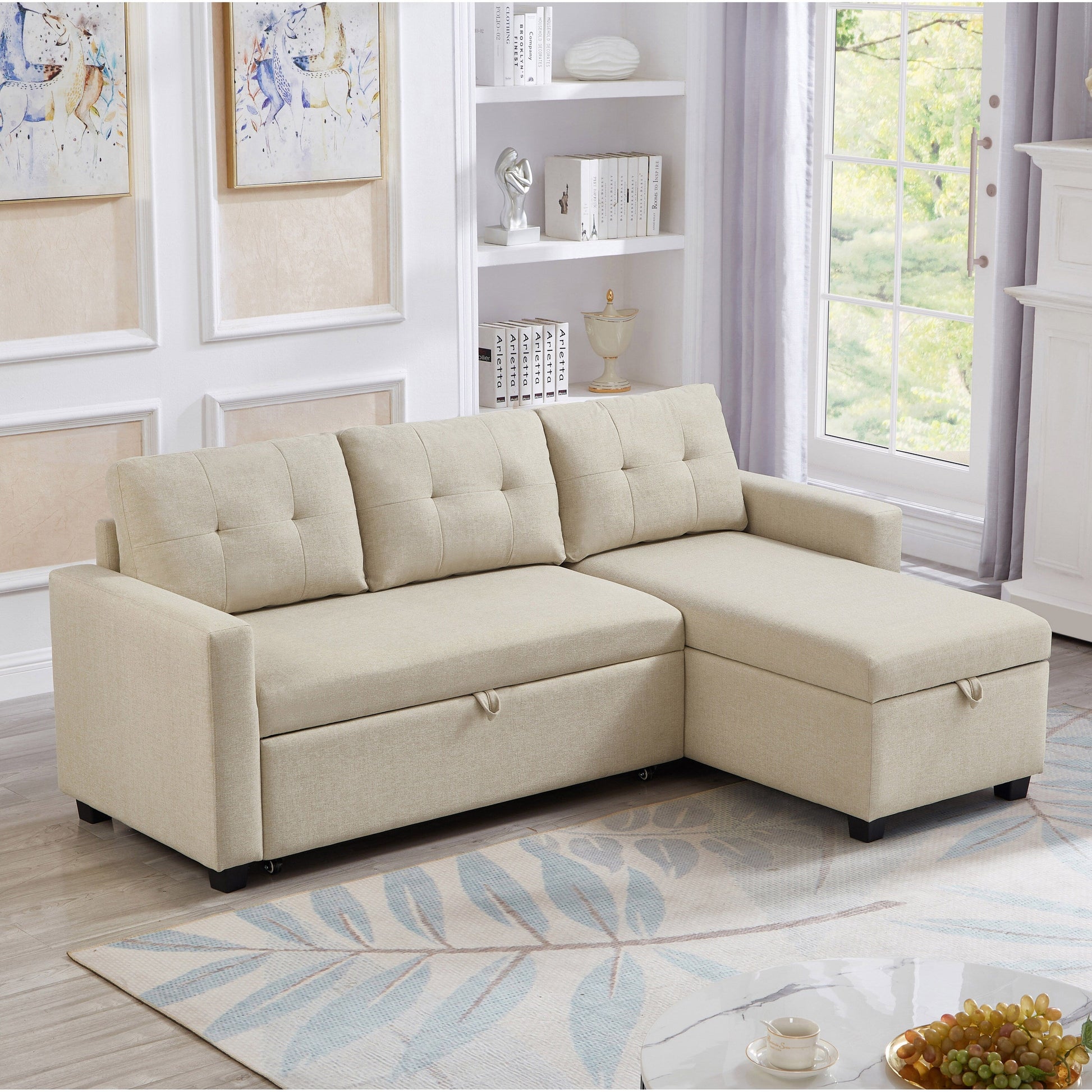 Canapé-lit convertible 3 places rembourré de 81,5 pouces avec lit gigogne, méridienne de rangement réversible et coussins de dossier
