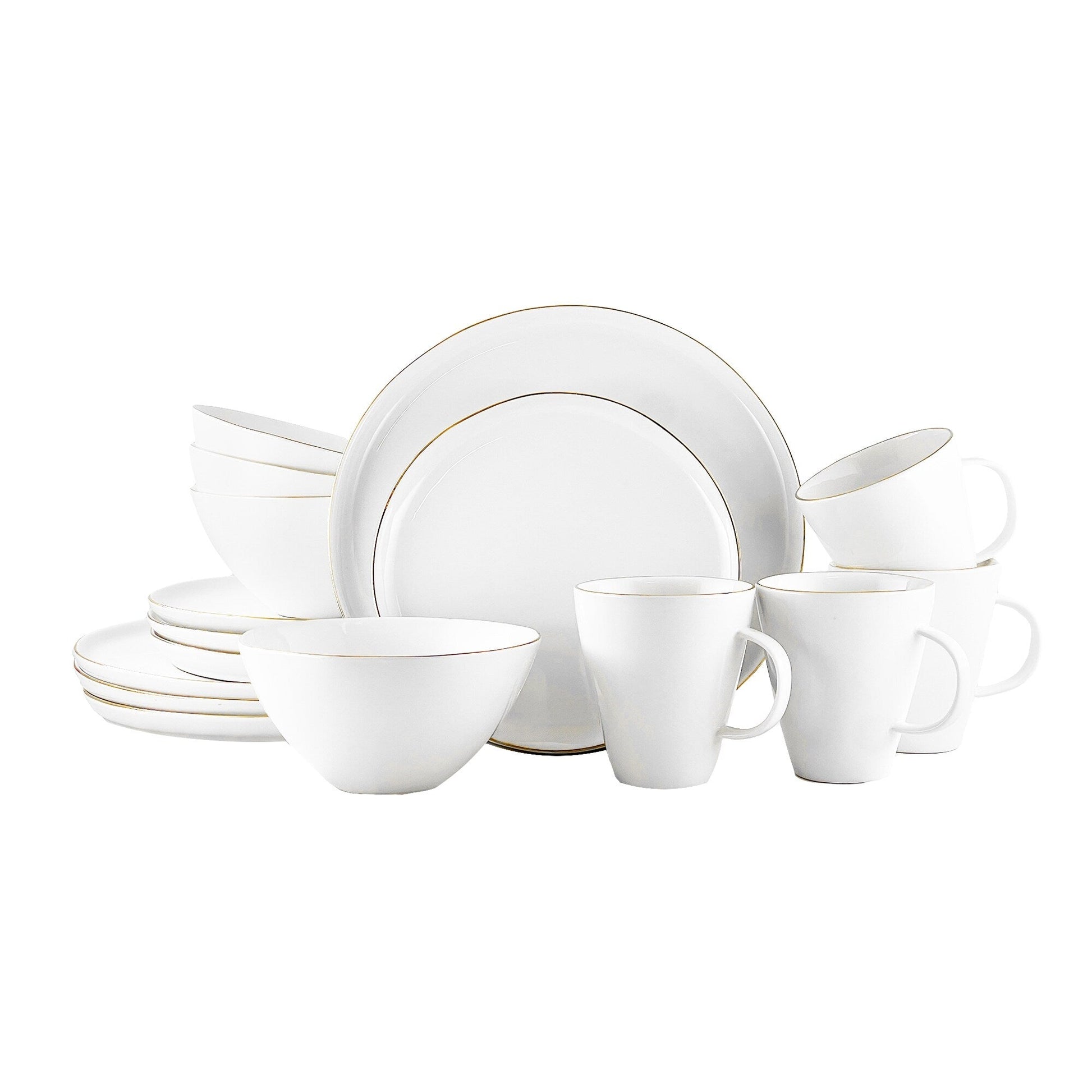 - Cet ensemble comprend 4 grandes assiettes, 4 assiettes moyennes, 4 bols moyens et 4 tasses.