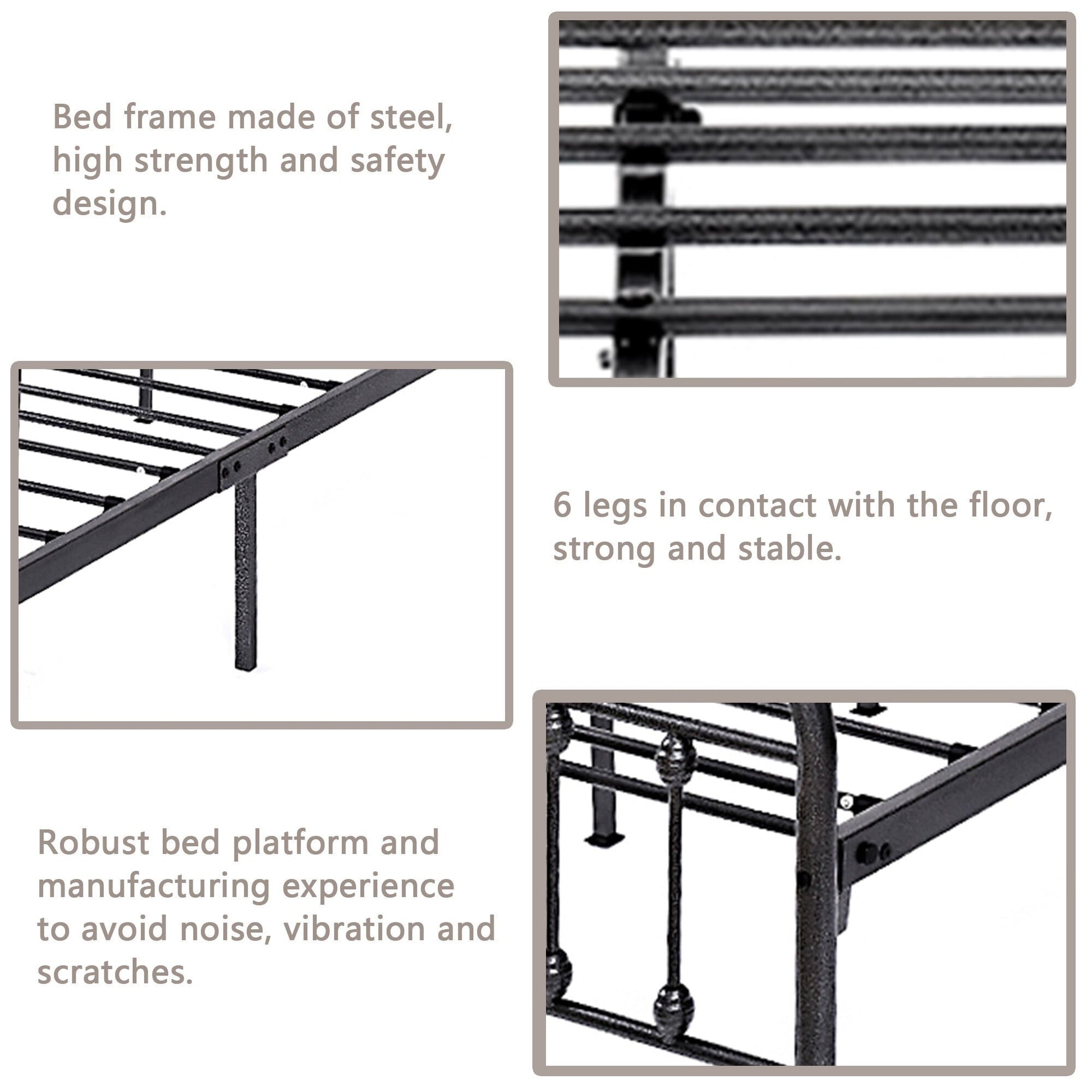 Cadre de lit plateforme en métal vintage simple Alazyhome, montage facile