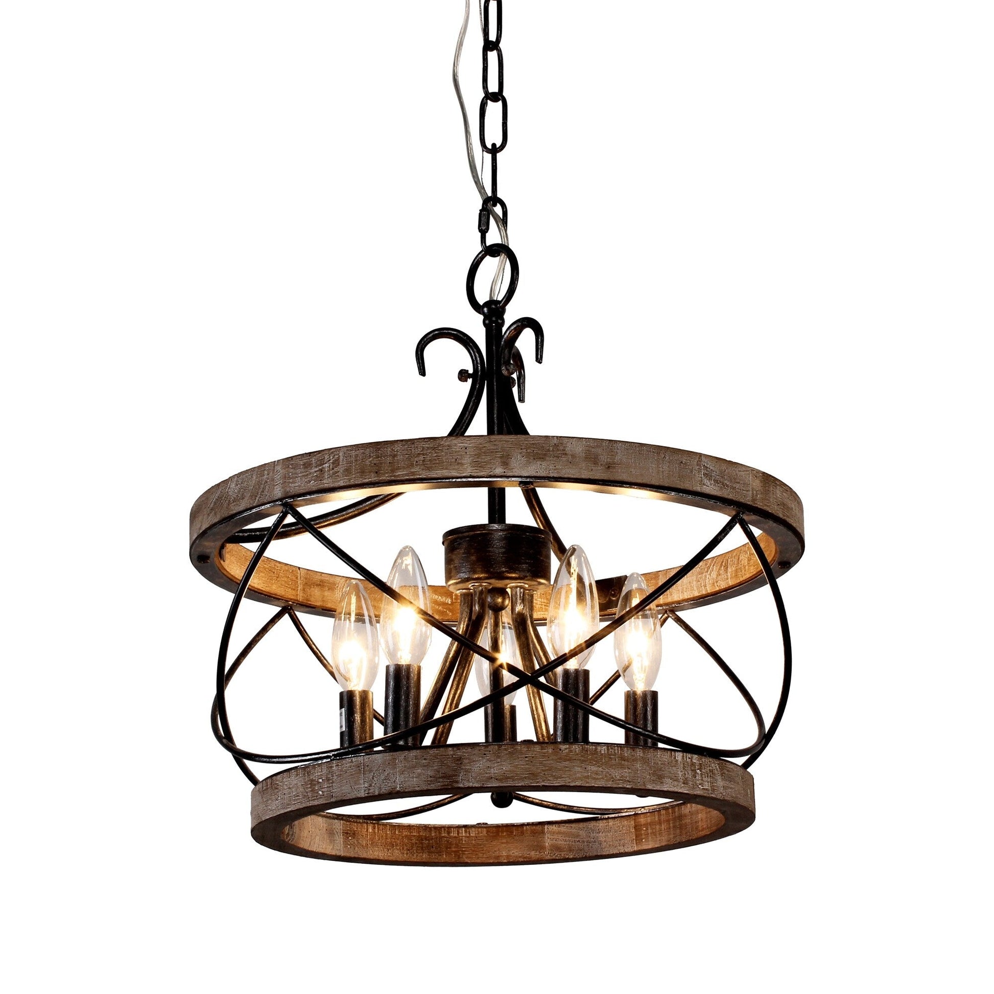 Apportez une touche de charme rustique à votre intérieur avec le lustre cage en bois rustique Bella Depot à 5 lumières. Fabriqué en magnifique bouleau, ce lustre est doté de quatre pieds de lampe en forme de bougie suspendus au bois et d'une chaîne réglable pouvant s'étendre jusqu'à 178 cm. Idéal pour la salle à manger, les couloirs et les îlots de cuisine, ce lustre rétro en bois est compatible avec les plafonds en pente jusqu'à 15 degrés et nécessite quatre ampoules de 40 watts maximum chacune (non fournies). Grâce à son installation facile, à son assurance qualité et à sa garantie d'un an, vous profiterez en un clin d'œil de la lumière chaleureuse et accueillante de ce lustre.