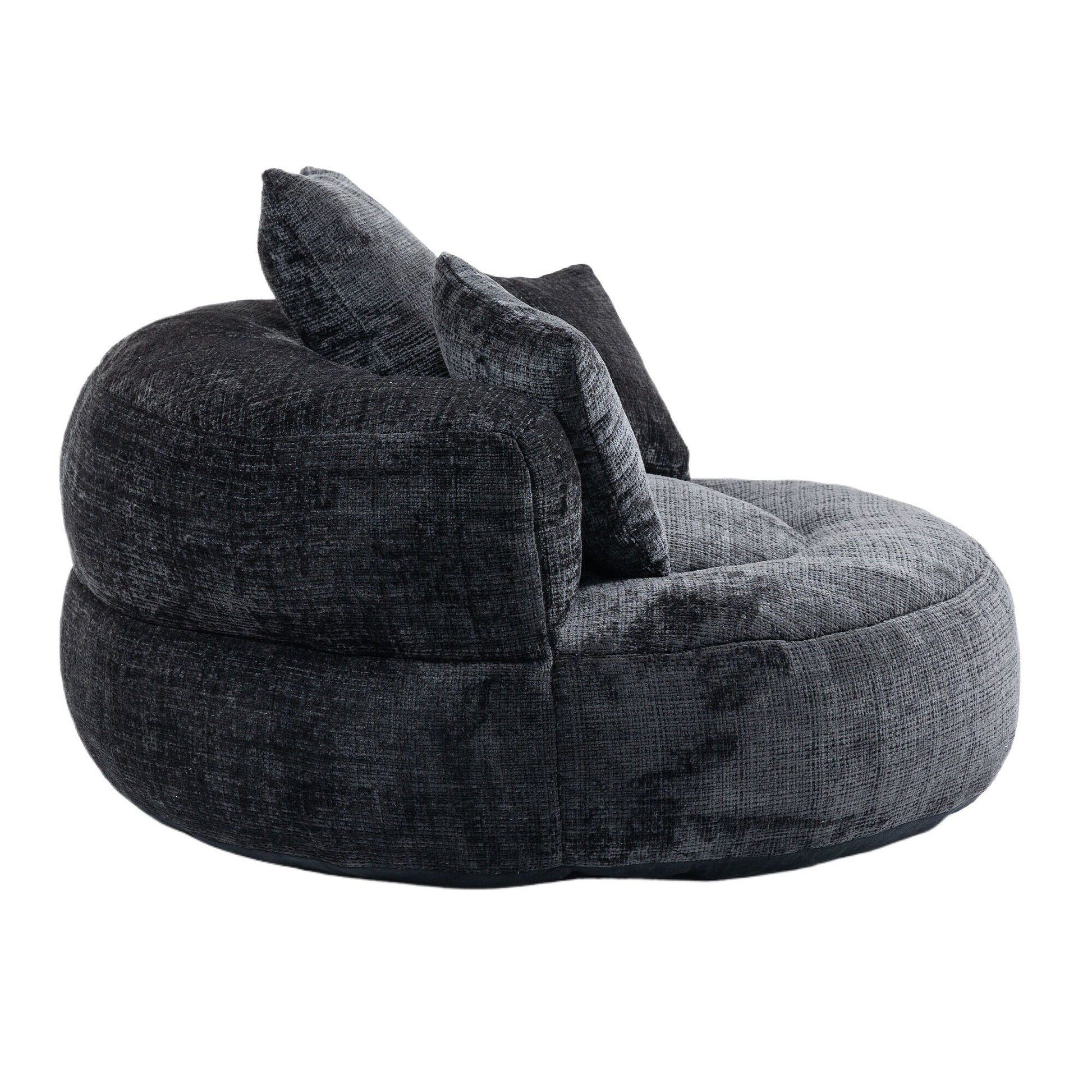 Pouf simple surdimensionné en chenille noir de 42,52 pouces avec trois oreillers pour chambre à coucher