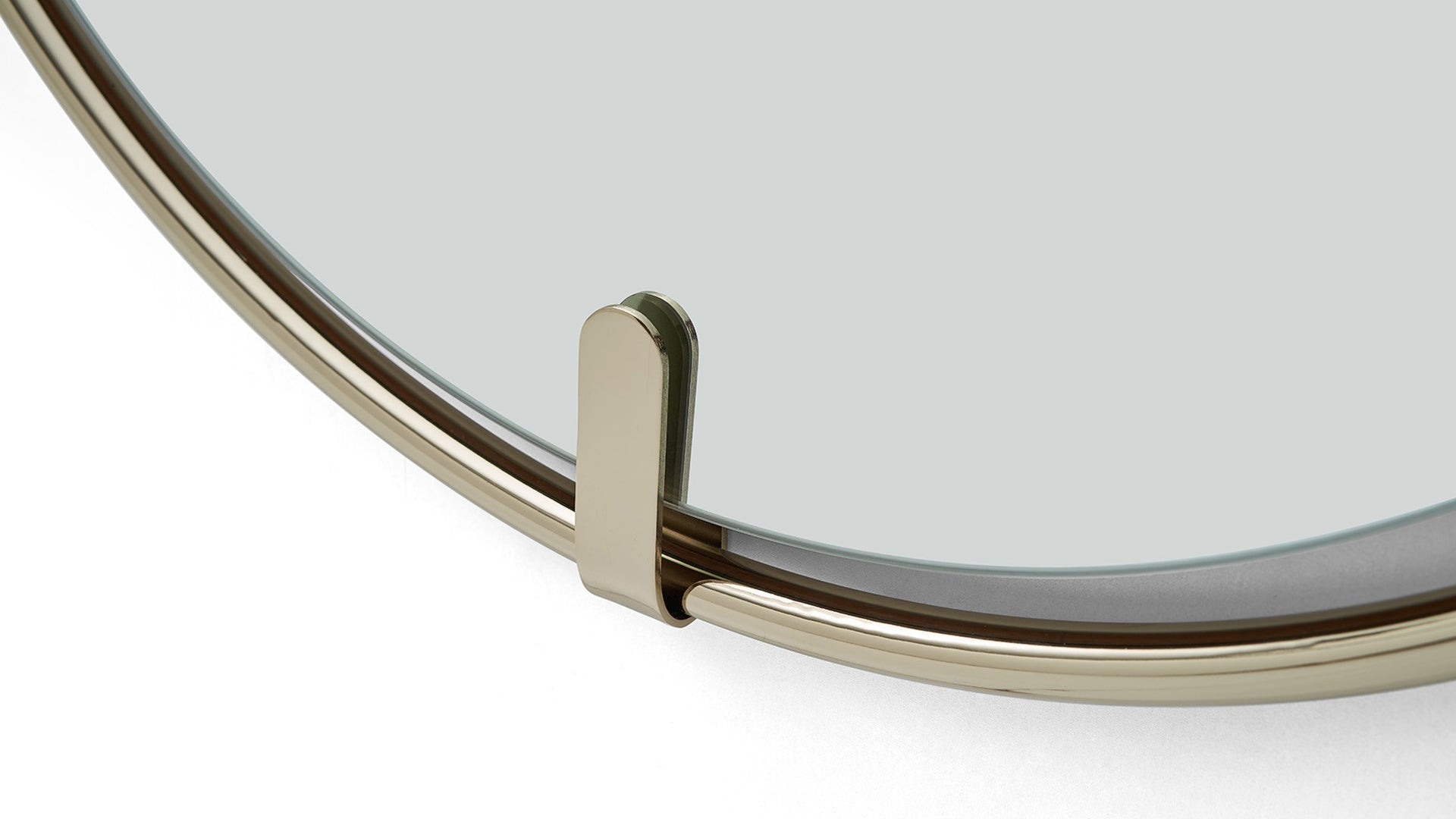 La collection Brita, qui se distingue par ses détails en métal doré, allie modernité et luxe avec ses miroirs de maquillage et de coiffeuse. Installez ce miroir circulaire au cadre en métal doré sur la coiffeuse ou la coiffeuse de votre chambre, de votre salle à manger ou sur la commode de l'entrée !