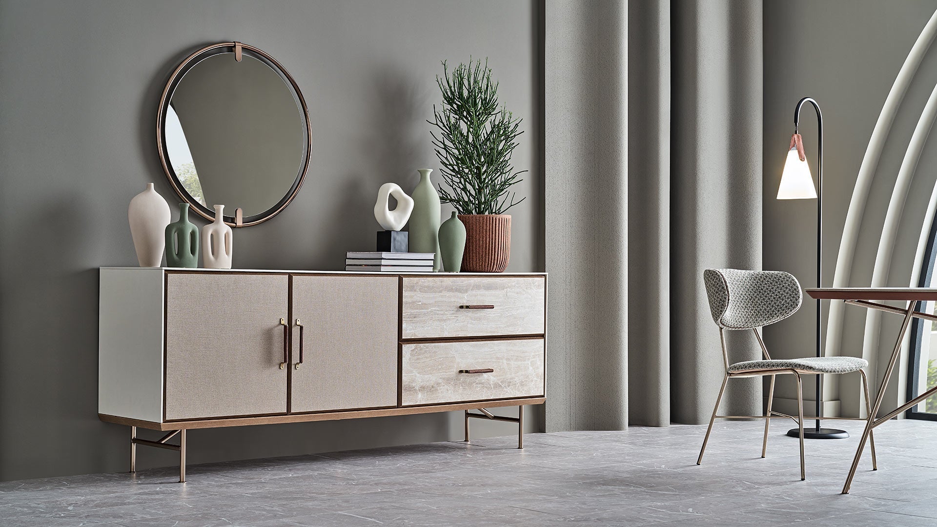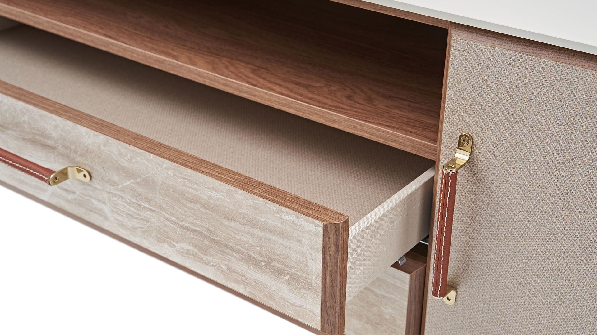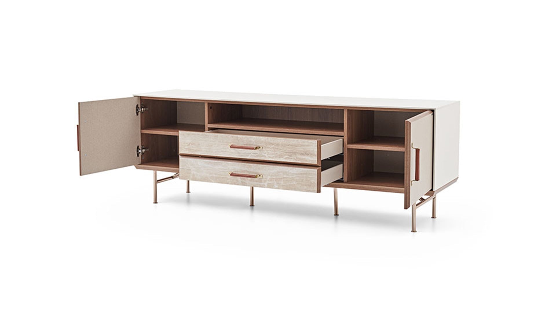 La mini-commode Brita s'intègre parfaitement dans différents espaces de vie. Elle peut servir de meuble TV dans votre salon ou de commode dans votre salle à manger. Exposez vos accessoires préférés avec style !