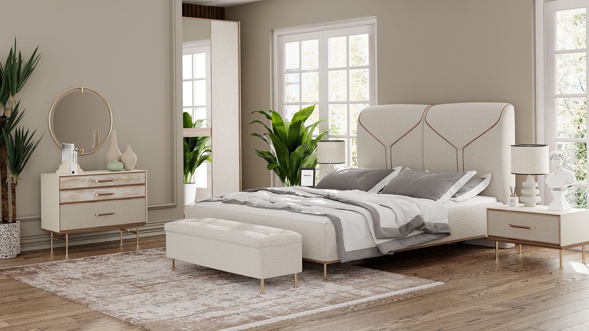 Le tiroir large Brita apporte non seulement une touche d'élégance à votre chambre, mais offre également un espace de rangement généreux pour vos affaires. Ses pieds dorés et ses poignées modernes lui confèrent une allure plus élégante. Créez la chambre de vos rêves avec le tiroir large Brita !