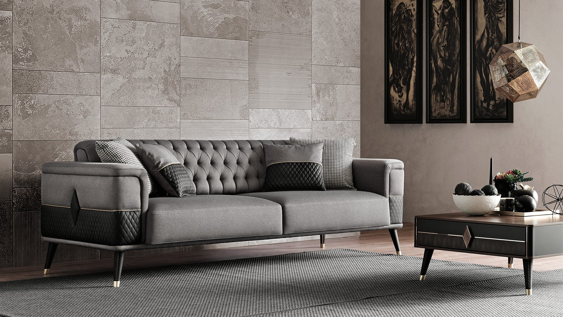 Ajoutez une nouvelle atmosphère à vos espaces de vie avec l'ensemble de canapés Diamond qui combine des lignes de design innovantes avec le reflet géométrique des pierres précieuses.