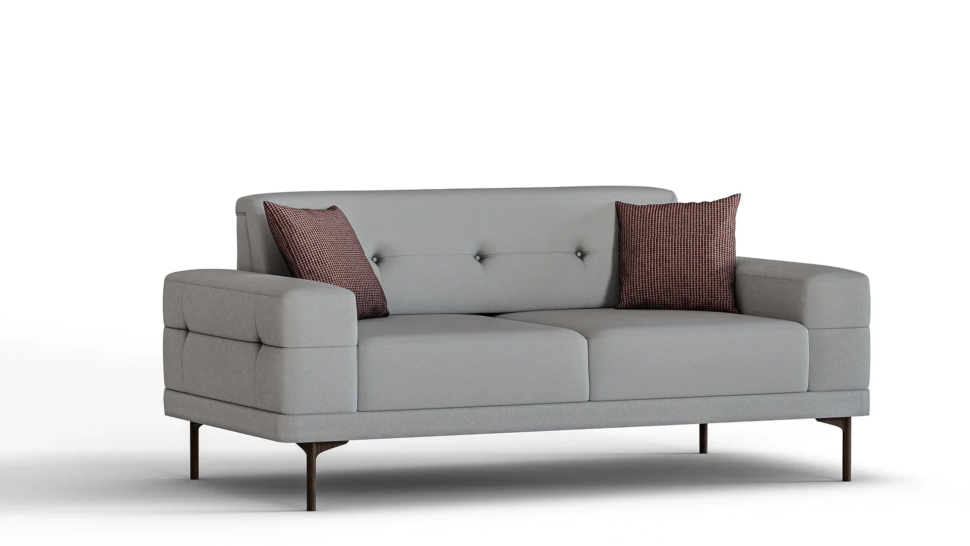 Le canapé 2 places Elissa allie simplicité moderne et confort dynamique. Doté de pieds en polymère ton noyer et d'un tissu gris texturé nubuck, ce canapé est idéal pour les intérieurs minimalistes. Grâce à son mécanisme Barcelona dépliable, il se transforme en lit, le rendant aussi pratique qu'élégant. Associez-le aux autres meubles de la collection Elissa pour créer un espace de vie raffiné et harmonieux.