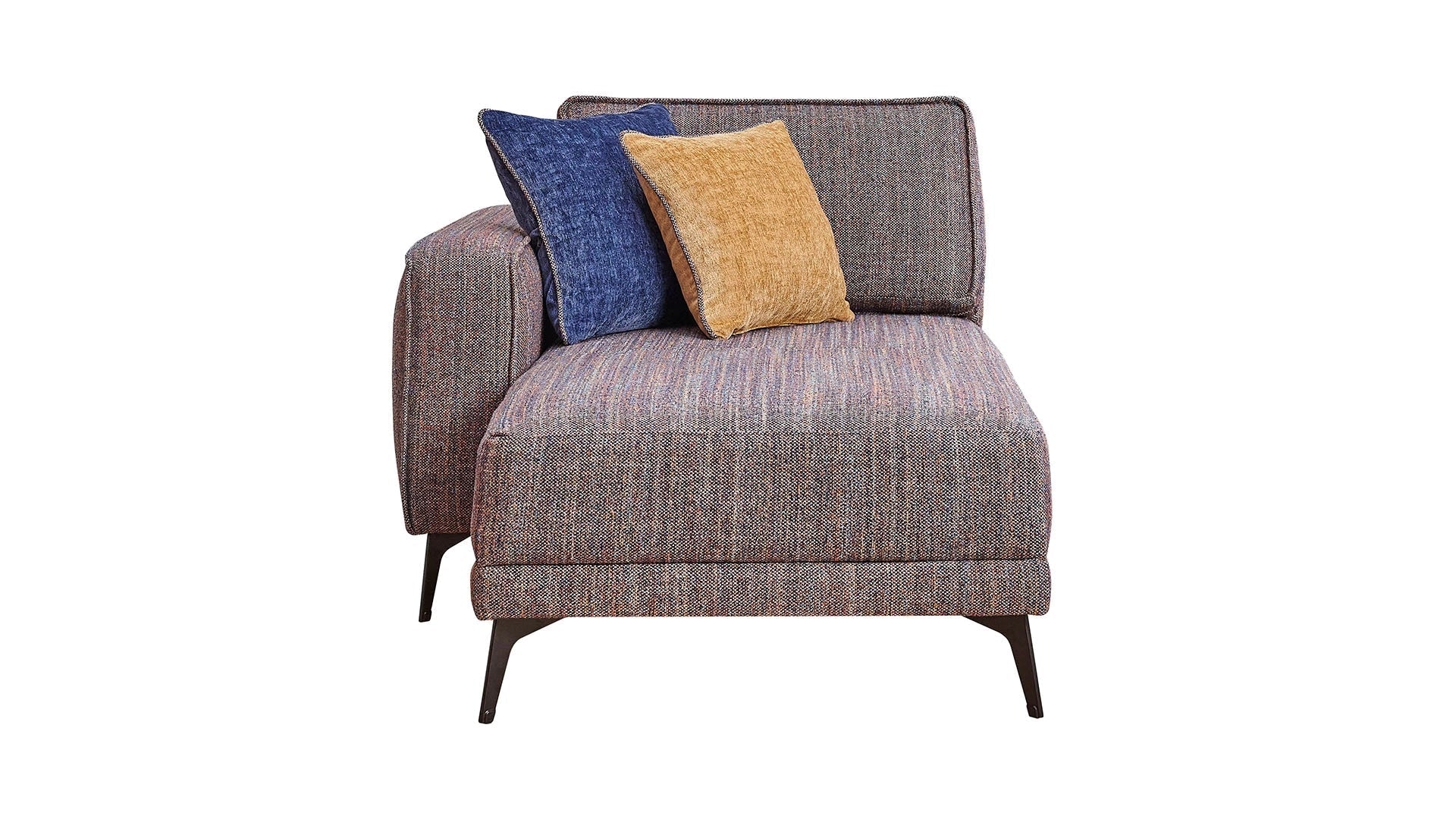 Le module méridienne Flexa gauche est un ajout élégant et fonctionnel à tout système d'assise modulaire. Doté d'une mousse 35 DNS moelleuse, d'un revêtement chenille bicolore vibrant et d'une assise profonde, il offre un confort de détente exceptionnel. Ses élégants pieds en métal noir apportent une touche de modernité, tandis que les coussins inclus améliorent l'esthétique et le maintien.