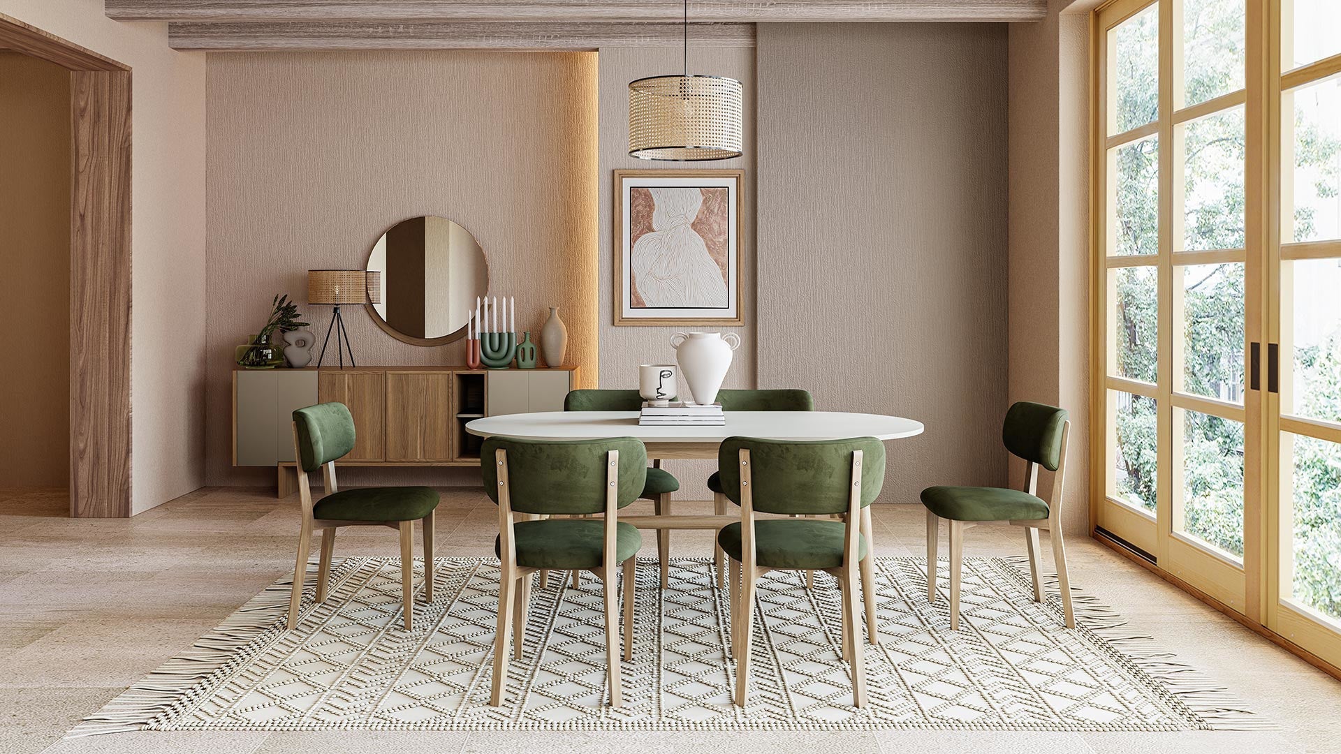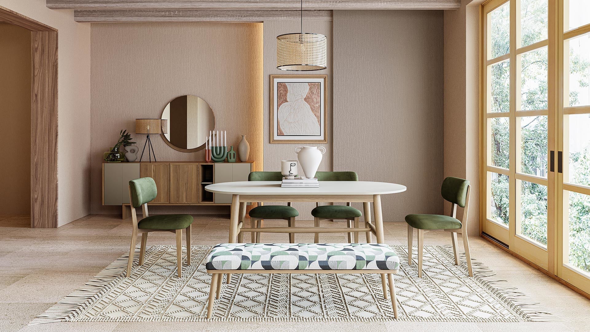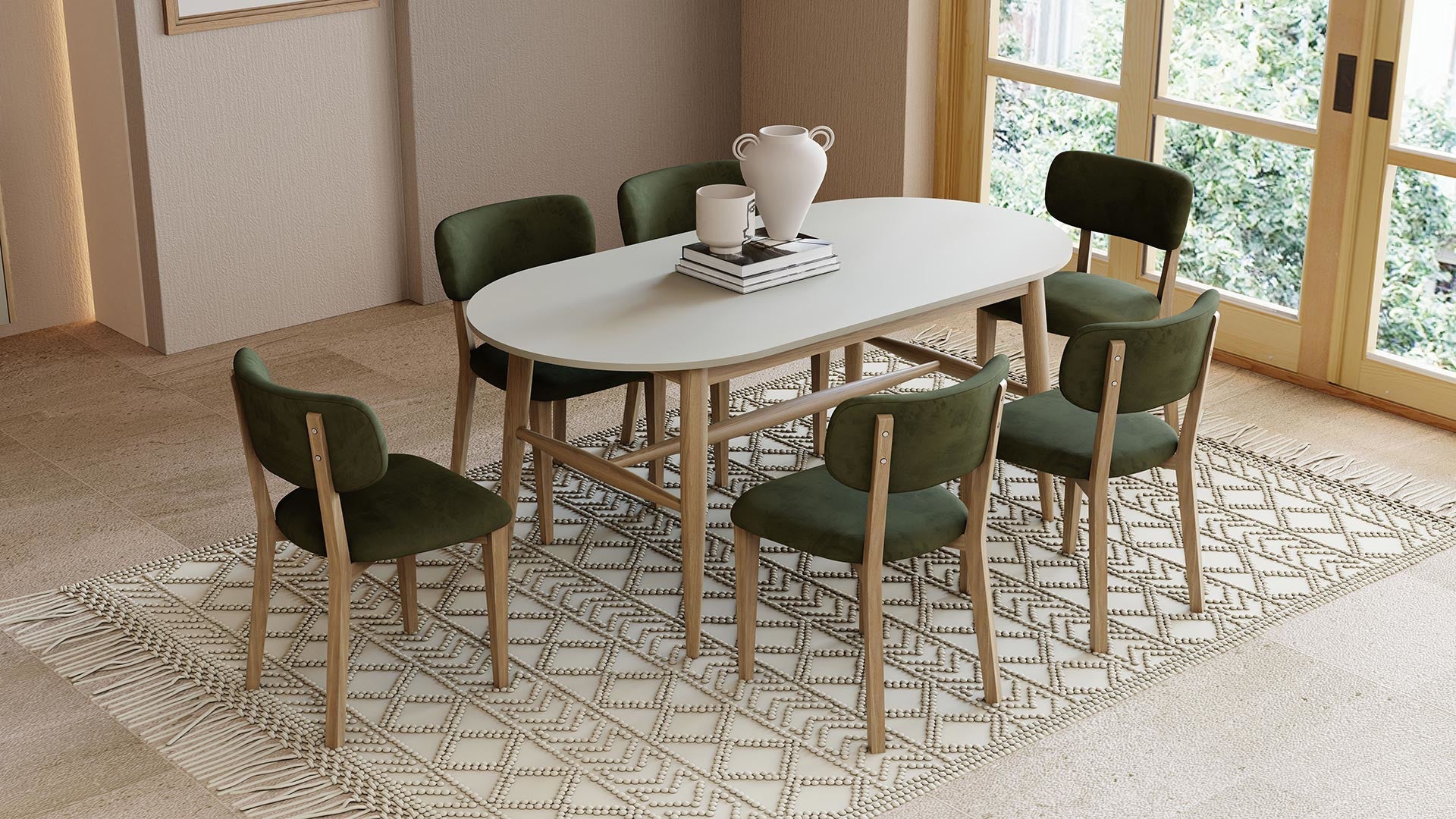 Table à manger à cadre fixe avec pieds en bois