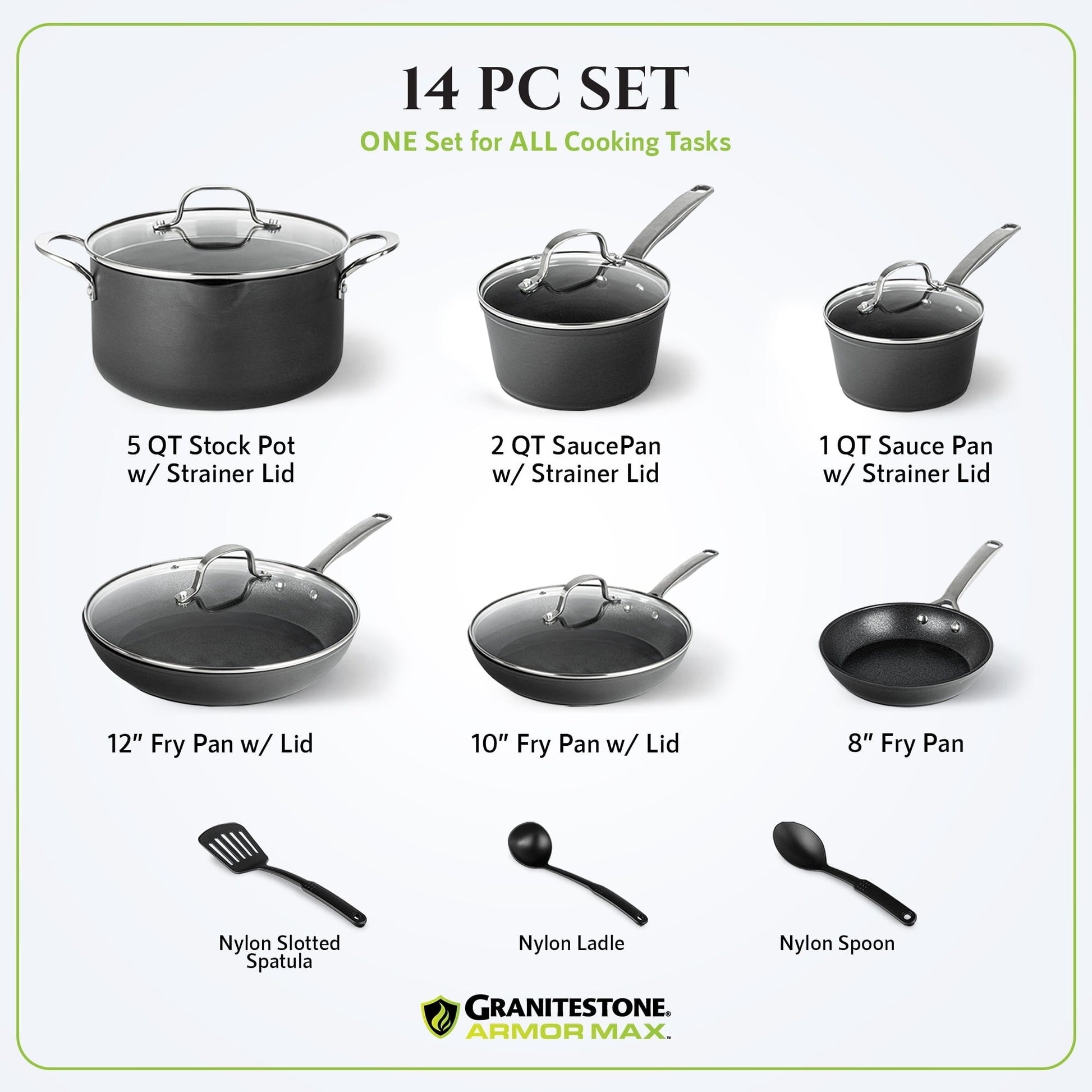 Batterie de cuisine anodisée dure Granitestone Armor Max 14 pièces