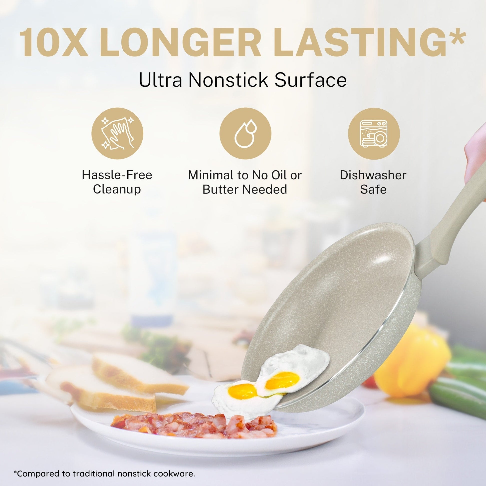 - ULTRA ANTIADHÉSIF : La surface de cuisson antiadhésive Granitestone est triplement revêtue puis renforcée de diamants pour une cuisson optimale. Sans assaisonnement, ni huile ni beurre, elle permet une alimentation plus saine et un nettoyage simple et rapide.