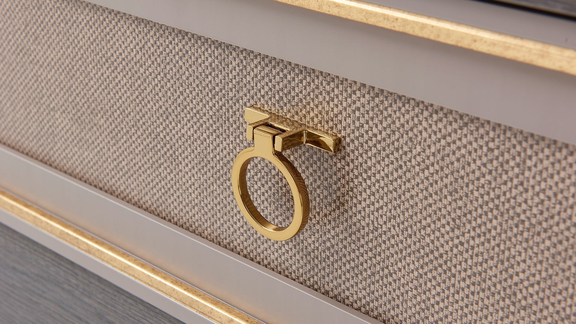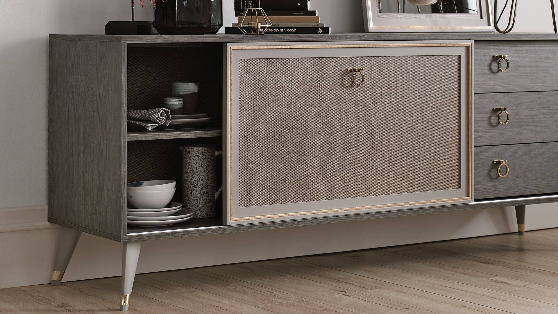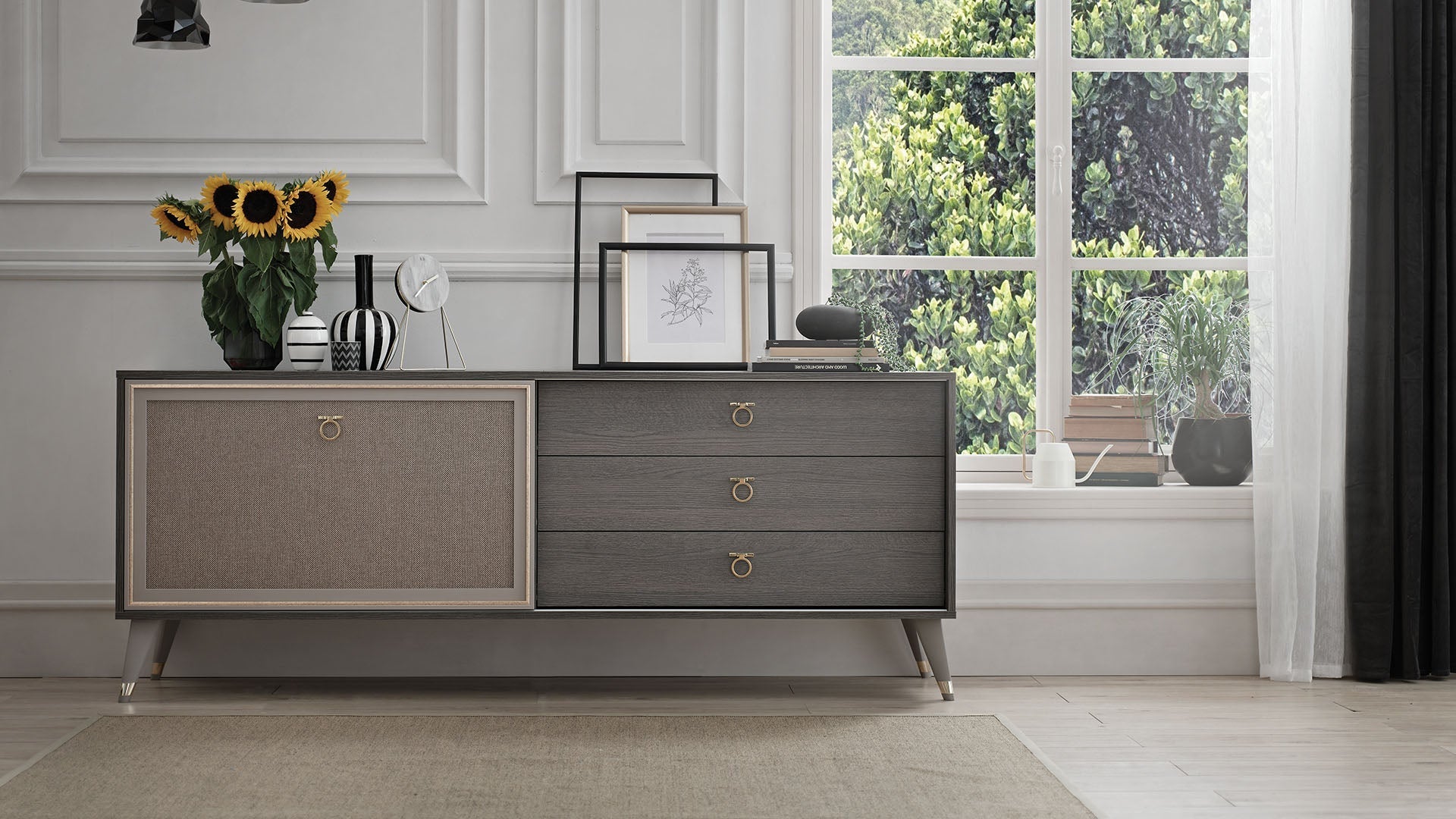 Découvrez la console Hector, dont le design est unique jusque dans les moindres détails. Ce meuble élégant, associant différents matériaux, est complété par des poignées en forme d'anneau et des pieds élégants. D'élégants détails dorés subliment son esthétique. Si vous recherchez une console pratique et élégante pour votre salle à manger, optez pour la console Hector.