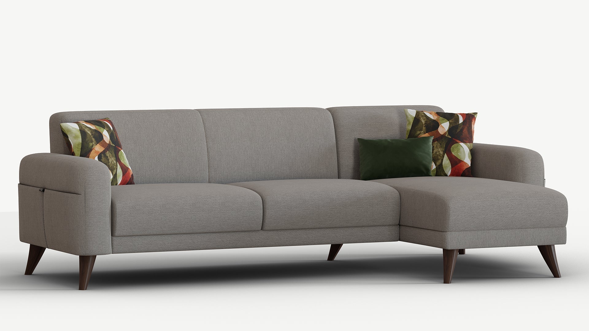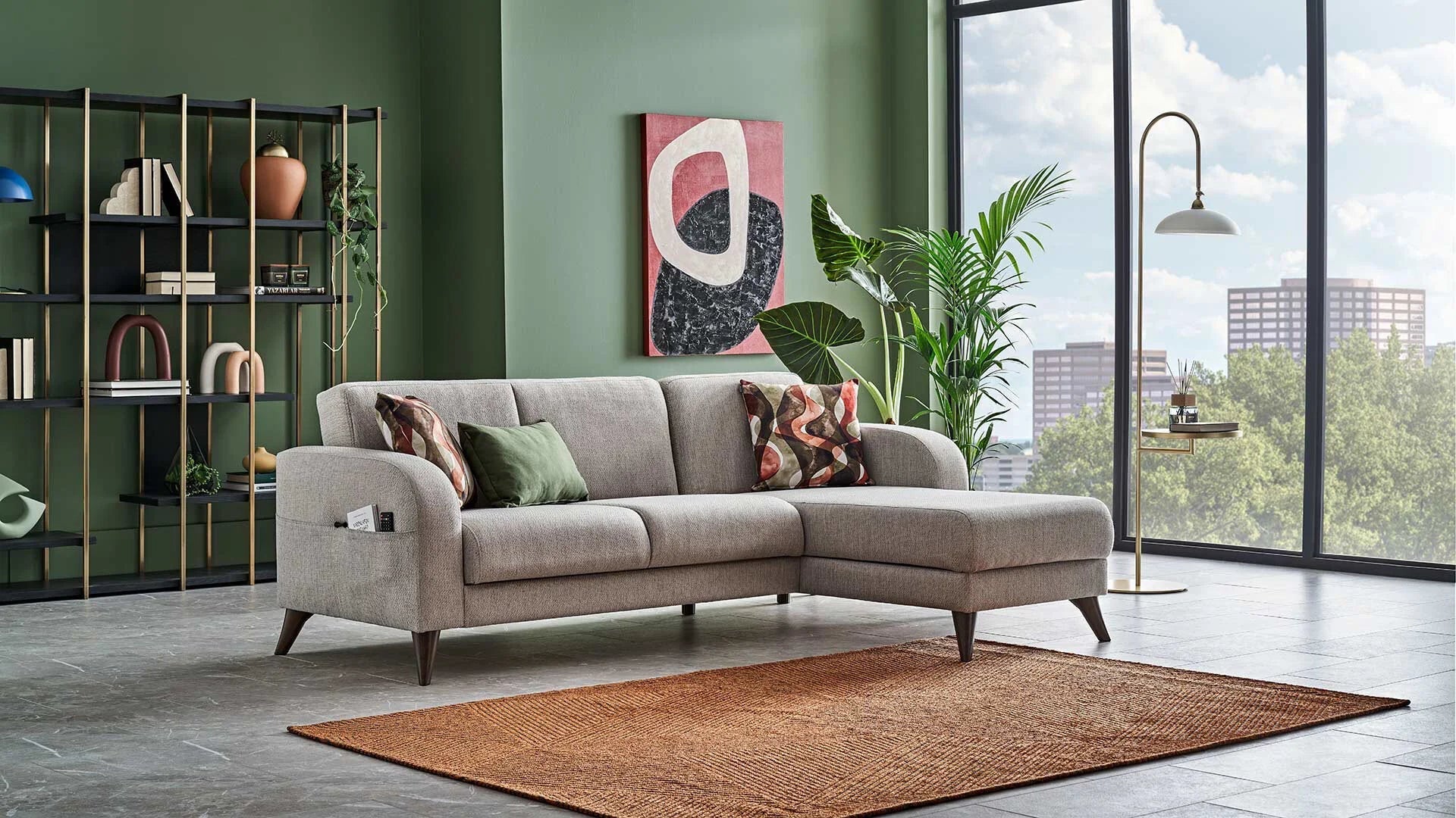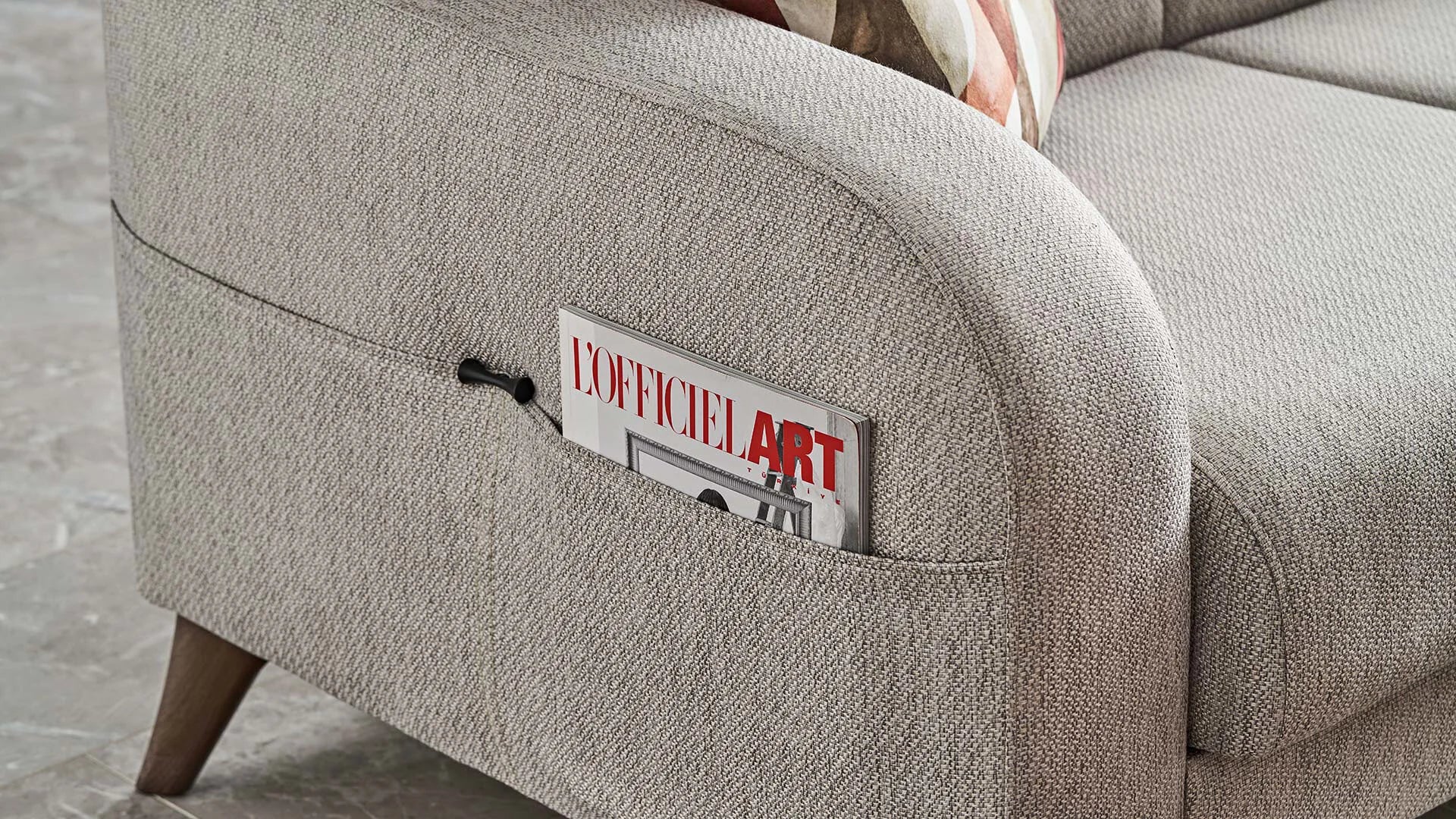 L'ensemble d'angle Hilda complètera avec élégance la décoration de votre salon ou de votre entrée grâce à son design élégant alliant sport et modernité. Remarquable par sa poche et son bouton sur l'accoudoir, il vous offrira un confort optimal. Vous apprécierez également l'association de pieds en bois couleur noyer et d'une assise confortable. L'ensemble d'angle Hilda, à la fois élégant et simple grâce à ses dimensions et son style minimalistes, convient également aux espaces restreints. Vous pouvez l'utiliser seul ou l'associer aux accessoires modernes Doğtaş.