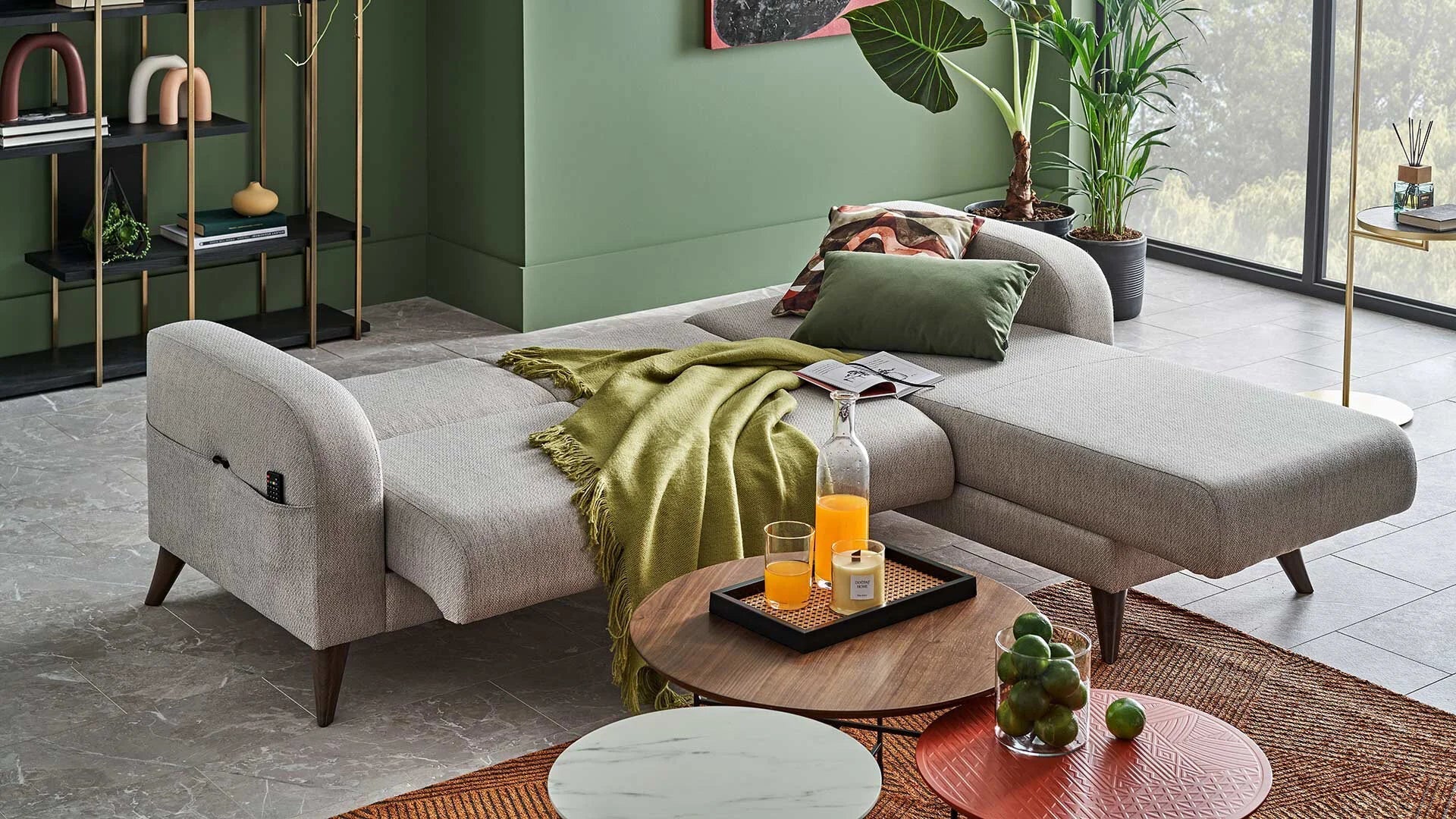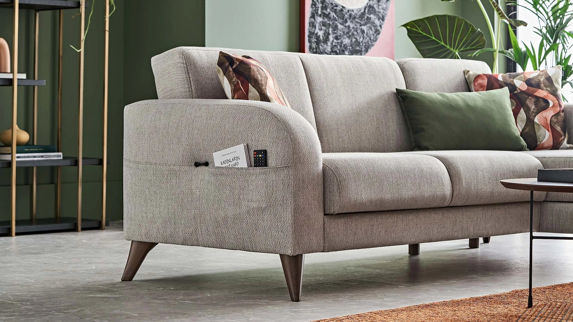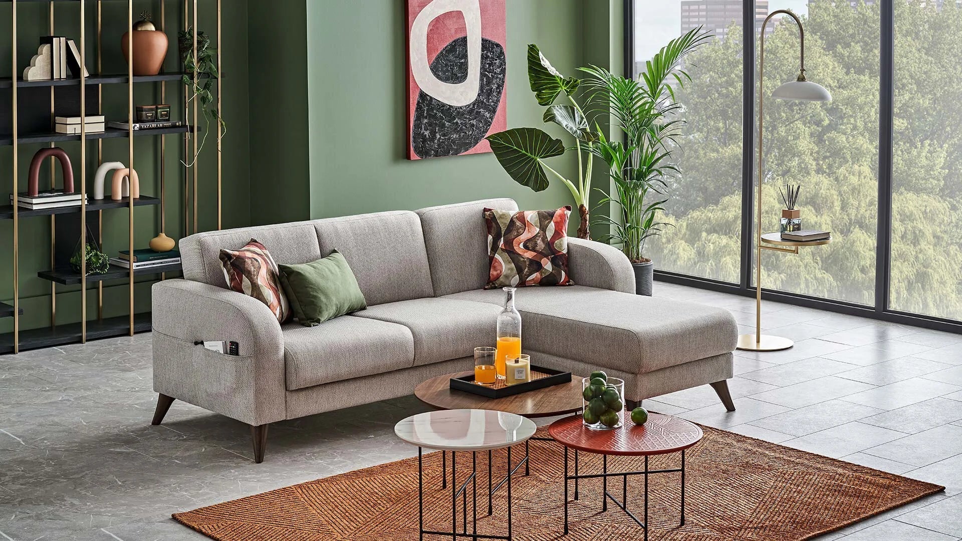 L'ensemble d'angle Hilda complètera avec élégance la décoration de votre salon ou de votre entrée grâce à son design élégant alliant sport et modernité. Remarquable par sa poche et son bouton sur l'accoudoir, il vous offrira un confort optimal. Vous apprécierez également l'association de pieds en bois couleur noyer et d'une assise confortable. L'ensemble d'angle Hilda, à la fois élégant et simple grâce à ses dimensions et son style minimalistes, convient également aux espaces restreints. Vous pouvez l'utiliser seul ou l'associer aux accessoires modernes Doğtaş.