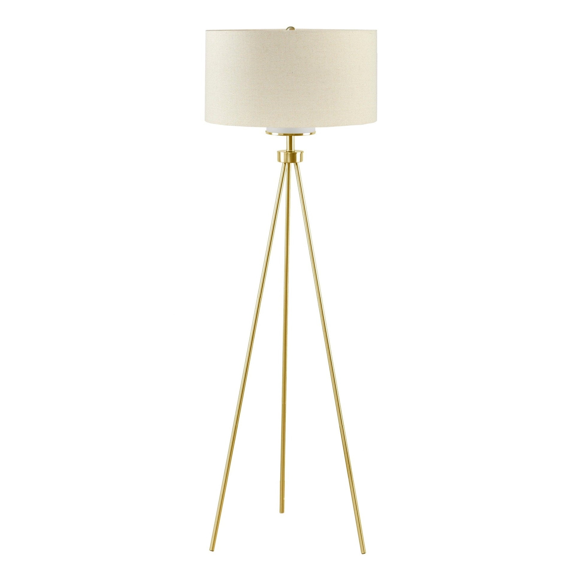 Ce lampadaire trépied signé INK+IVY apporte une touche de sophistication urbaine à n'importe quelle pièce. Son pied en métal, finition dorée ou argentée, est complété par un abat-jour en lin gris clair/crème pour une touche de modernité en toute simplicité.