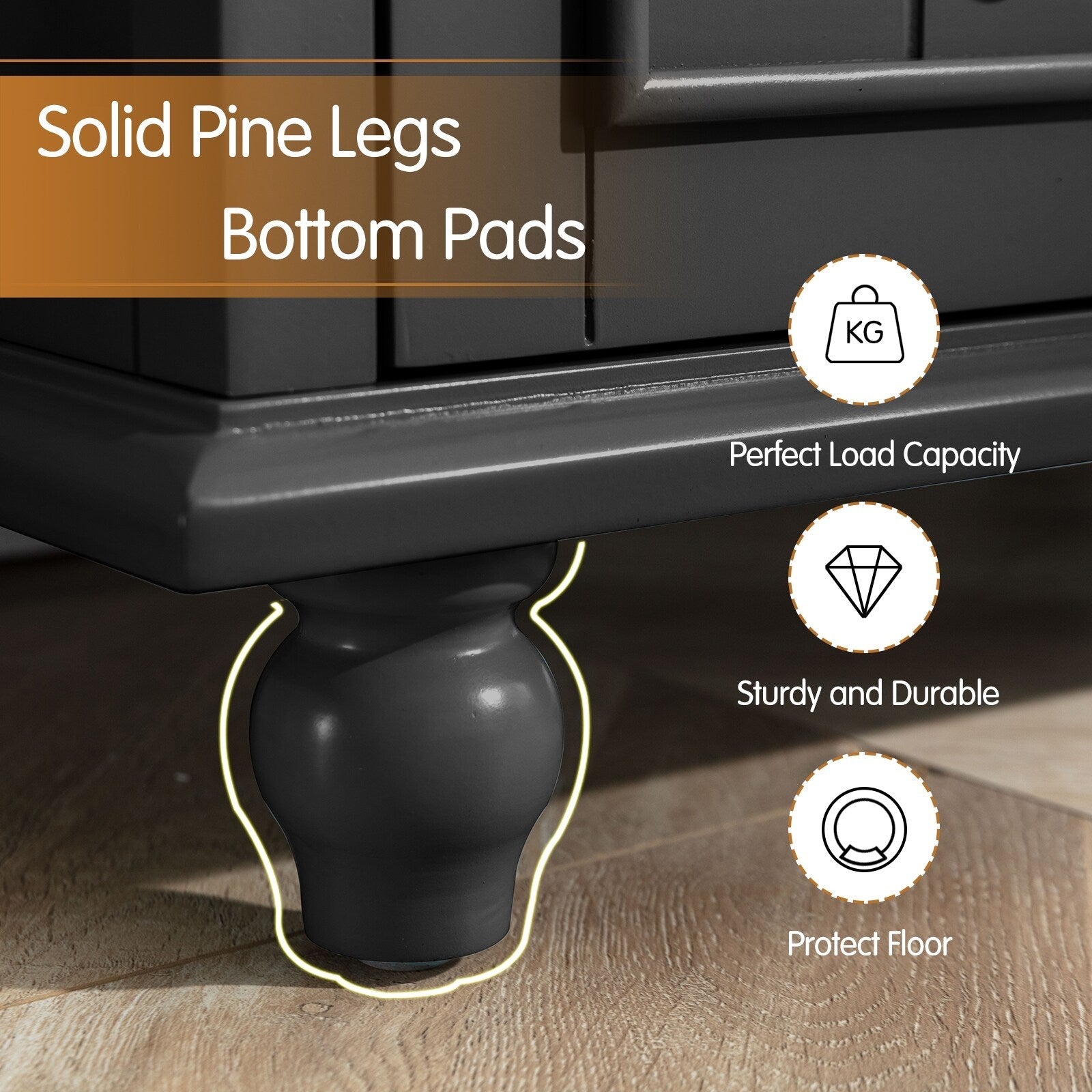 - Il peut supporter un poids plus important grâce à son panneau MDF robuste et ses pieds en bois. Il est résistant à l'eau et aux rayures. Sa base surélevée prévient les dommages causés par l'humidité.
