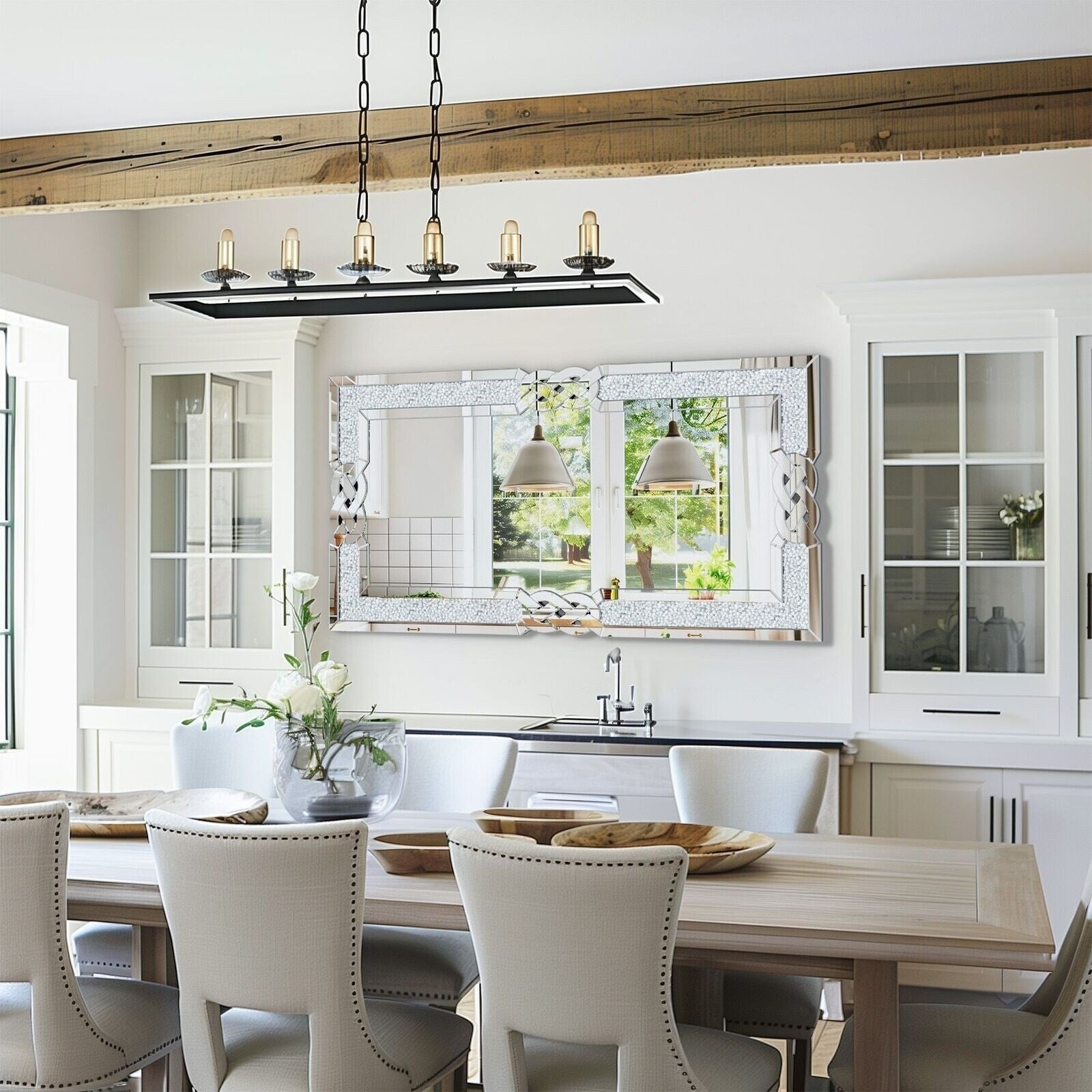 Grand miroir mural emboîtable avec perles de cristal rectangulaires