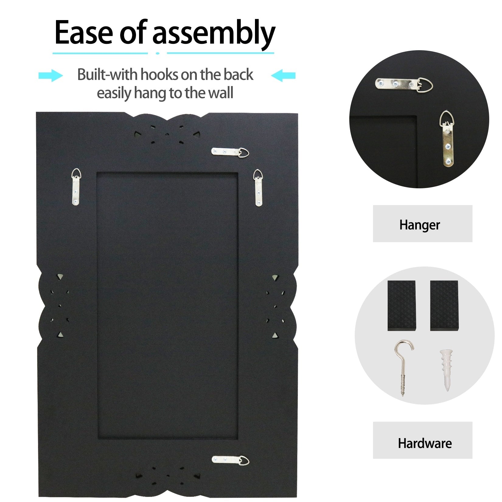 Accrochez le miroir avec quatre crochets en D à l'arrière, les deux permettant une suspension verticale ou horizontale.