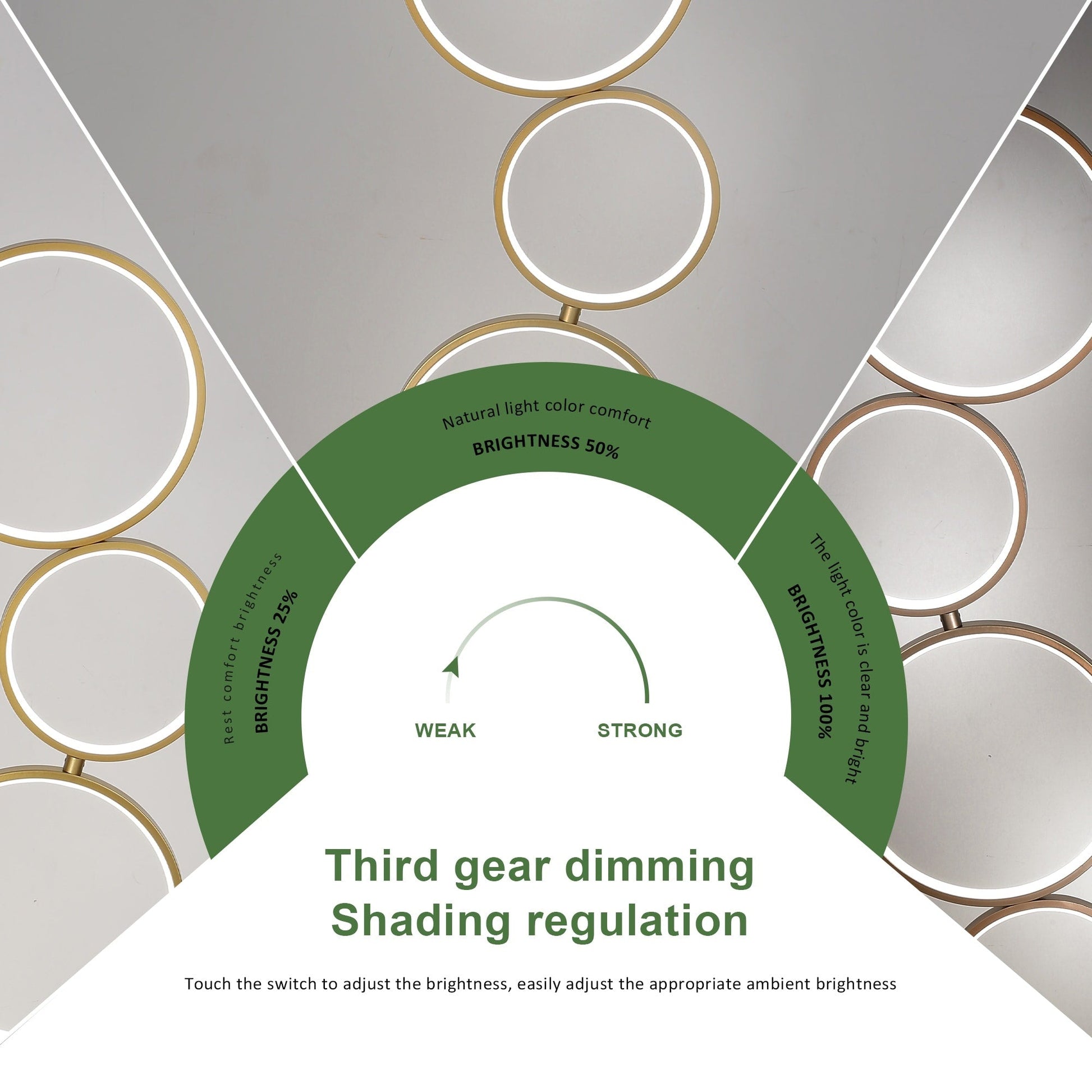 Ce lampadaire LED contemporain est doté de 5 anneaux LED circulaires de tailles différentes, avec des LED blanc chaud de 36 watts offrant une durée de vie allant jusqu'à 50 000 heures, soit 15 ans à raison de 8 heures d'éclairage par jour. Nos lampadaires LED vous permettent d'économiser 90 % sur votre facture d'électricité par rapport aux ampoules à incandescence ou halogènes. De plus, leur faible température de contact en fait une solution pratique et sûre.