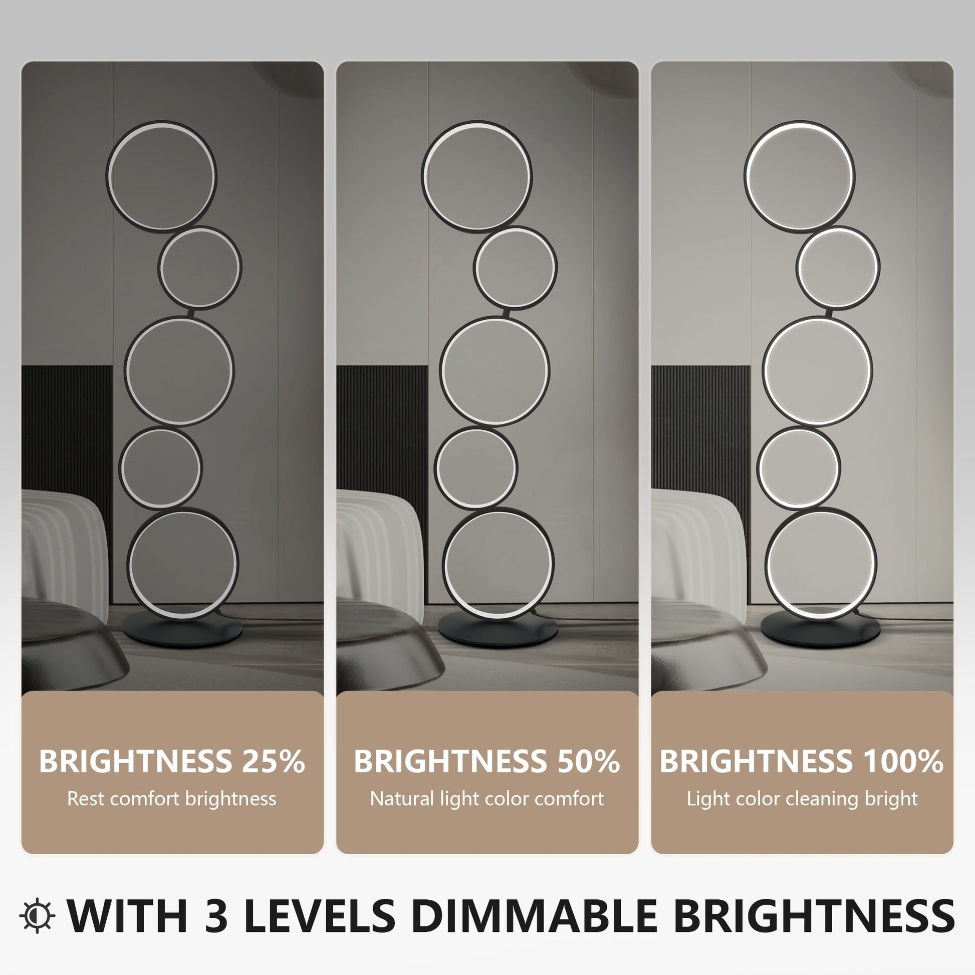 Lampadaire LED moderne à intensité variable, lampe d'angle lumineuse à 3 voies avec 5 anneaux pour salon