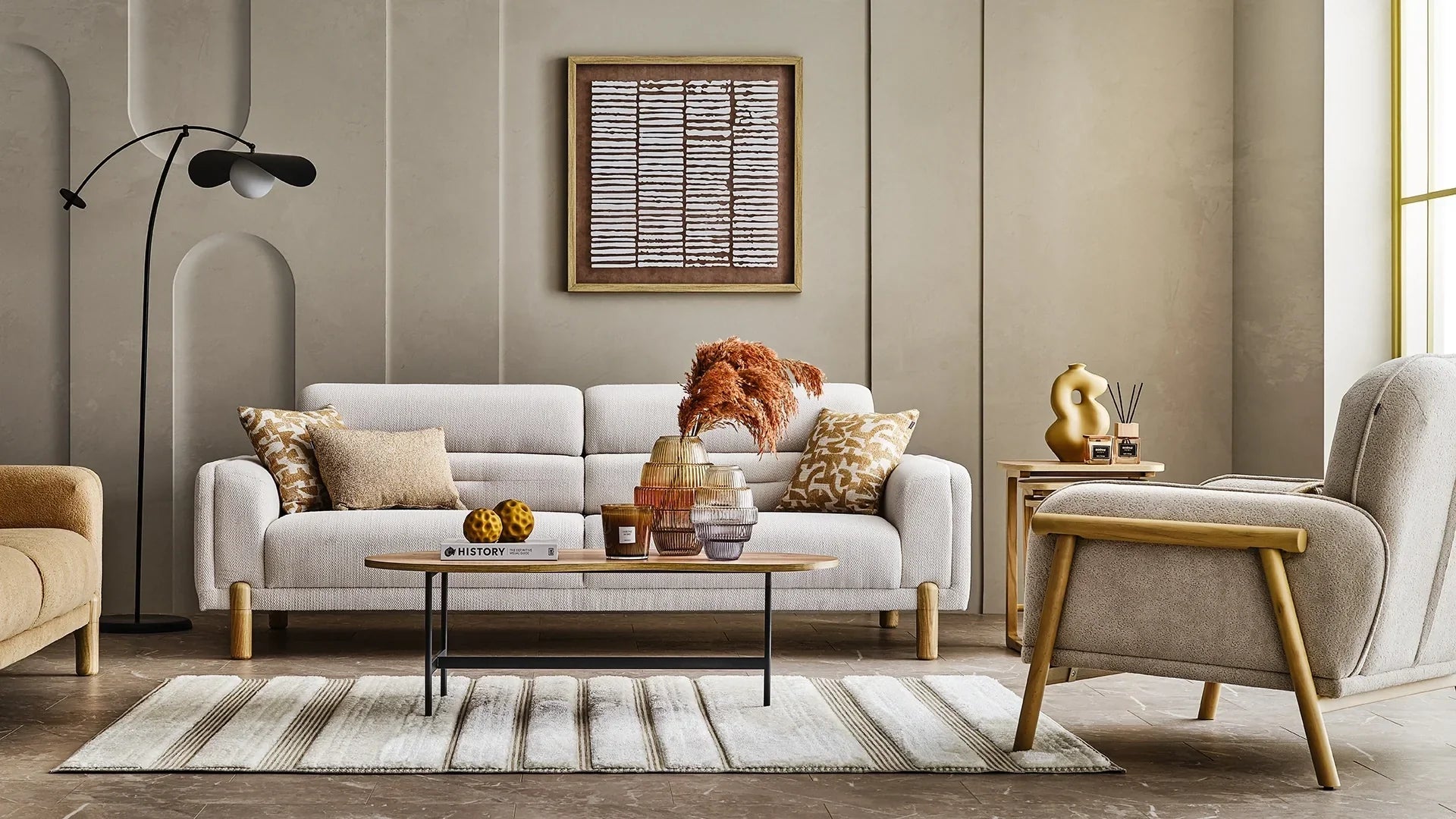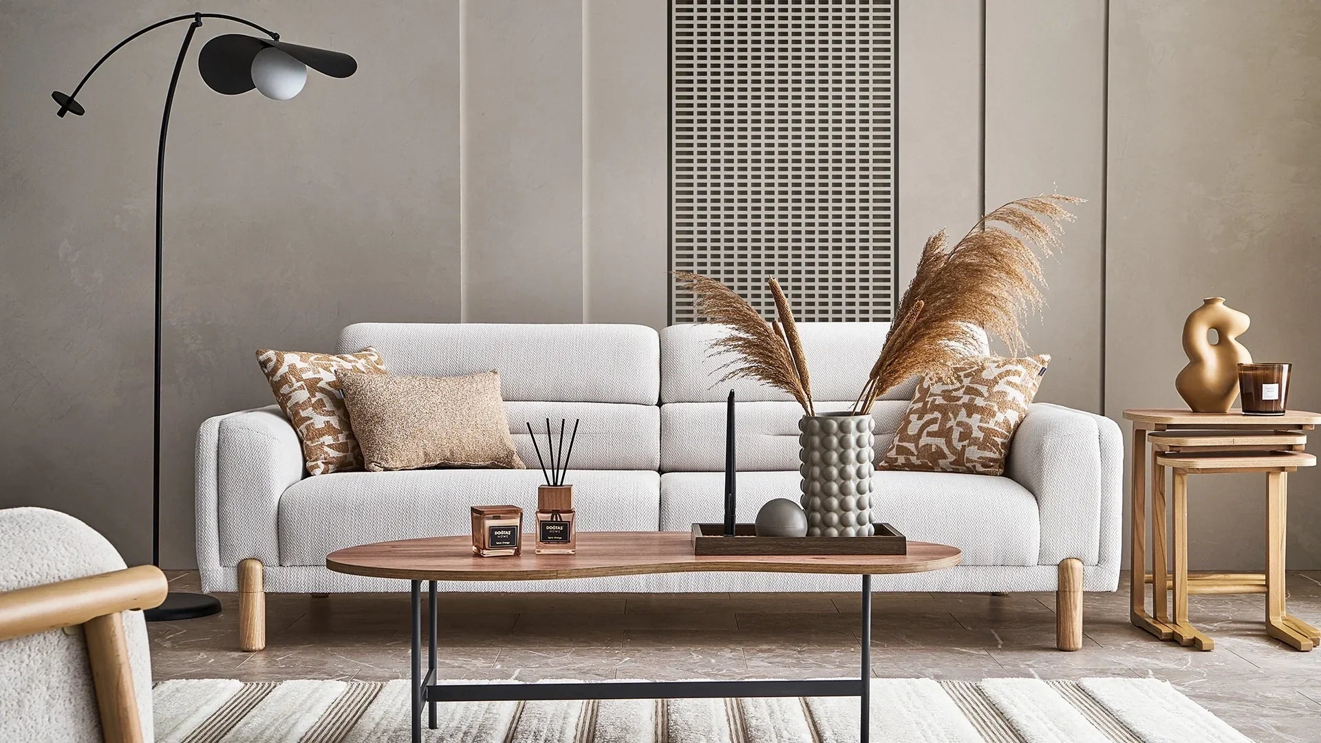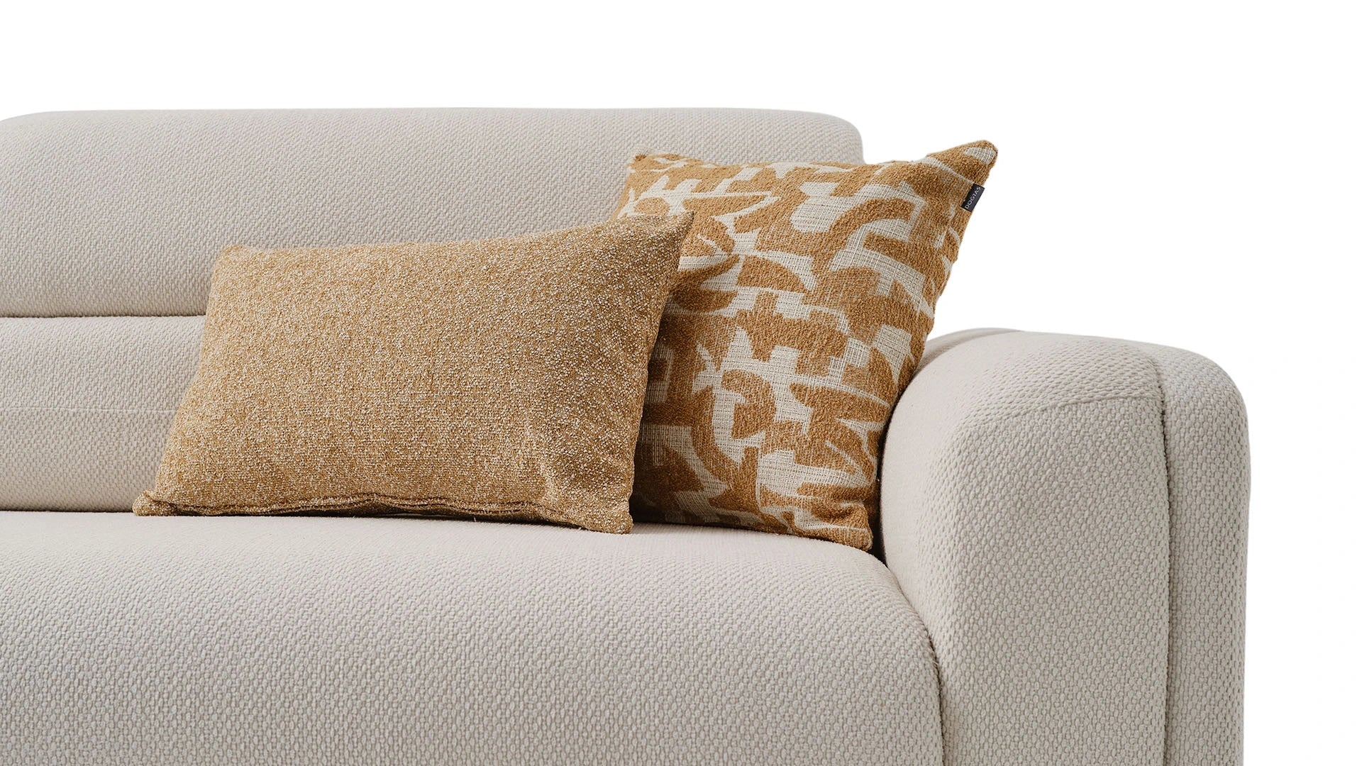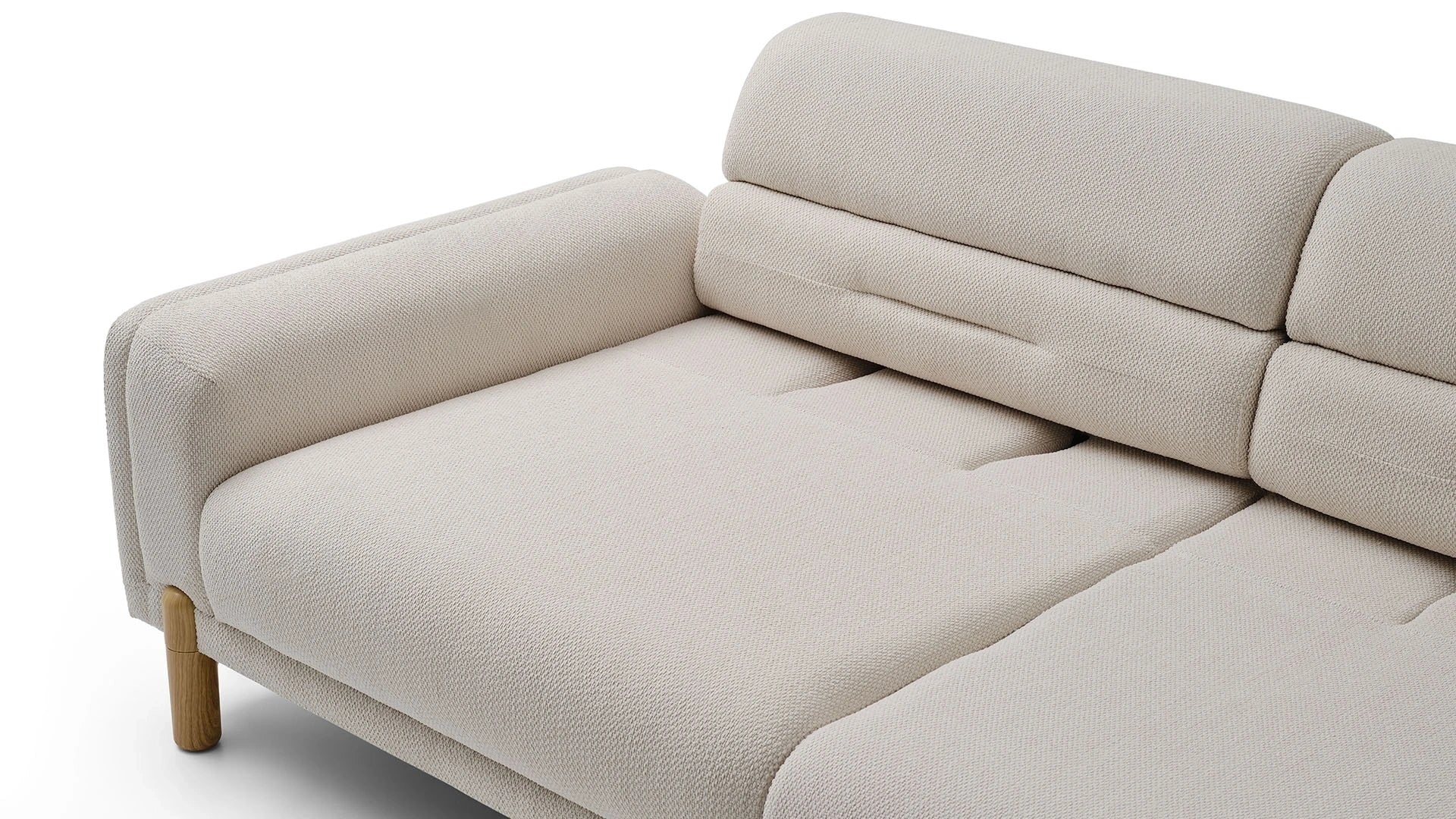 Le canapé-lit 3 places Legna allie esthétique chaleureuse et fonctionnalité au quotidien. Revêtu de tissu chenille crème et soutenu par des pieds en polymère couleur chêne, il offre une assise moelleuse et des lignes épurées et structurées. Son dossier rabattable permet de le transformer facilement en lit, idéal pour recevoir des invités ou pour des soirées détente. Un ensemble de coussins crème à motifs apporte une touche décorative subtile à ce meuble élégant et pratique.