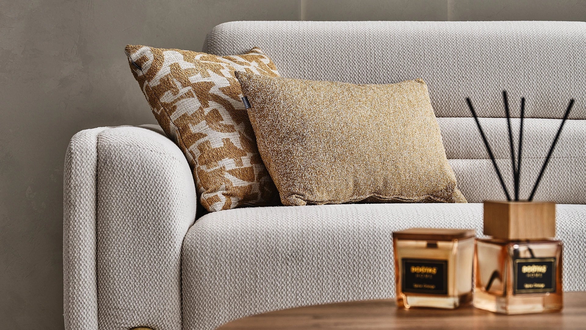 - Coussins : 2 pièces, Dimensions : 45 x 45 cm (17,7' x 17,7'), Couleur : Crème tissée à motifs
