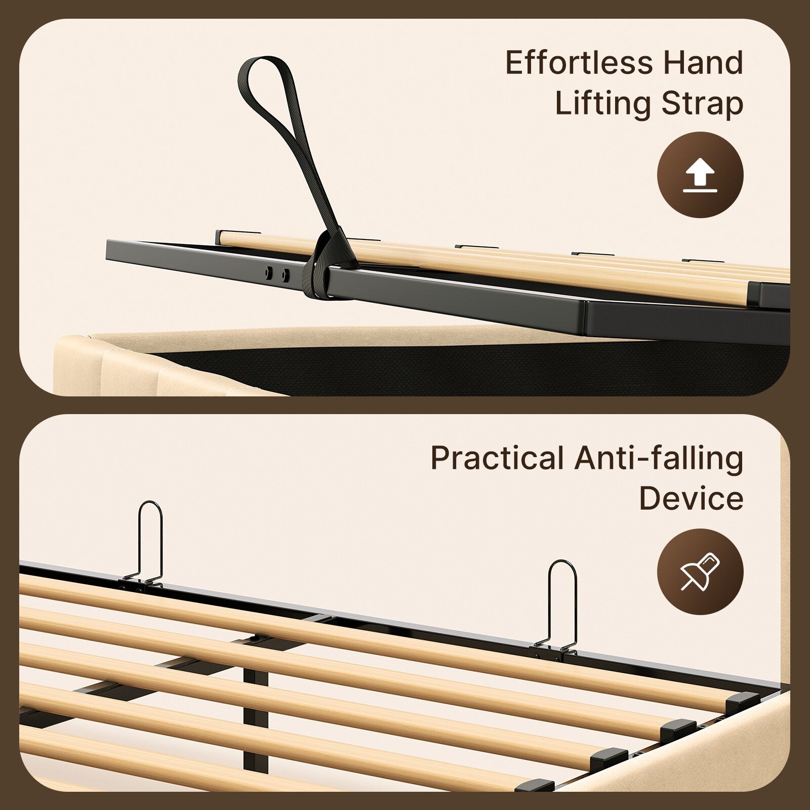 Cadre de lit relevable avec rangement, cadre de lit plateforme rembourré avec système de rangement hydraulique et tête de lit
