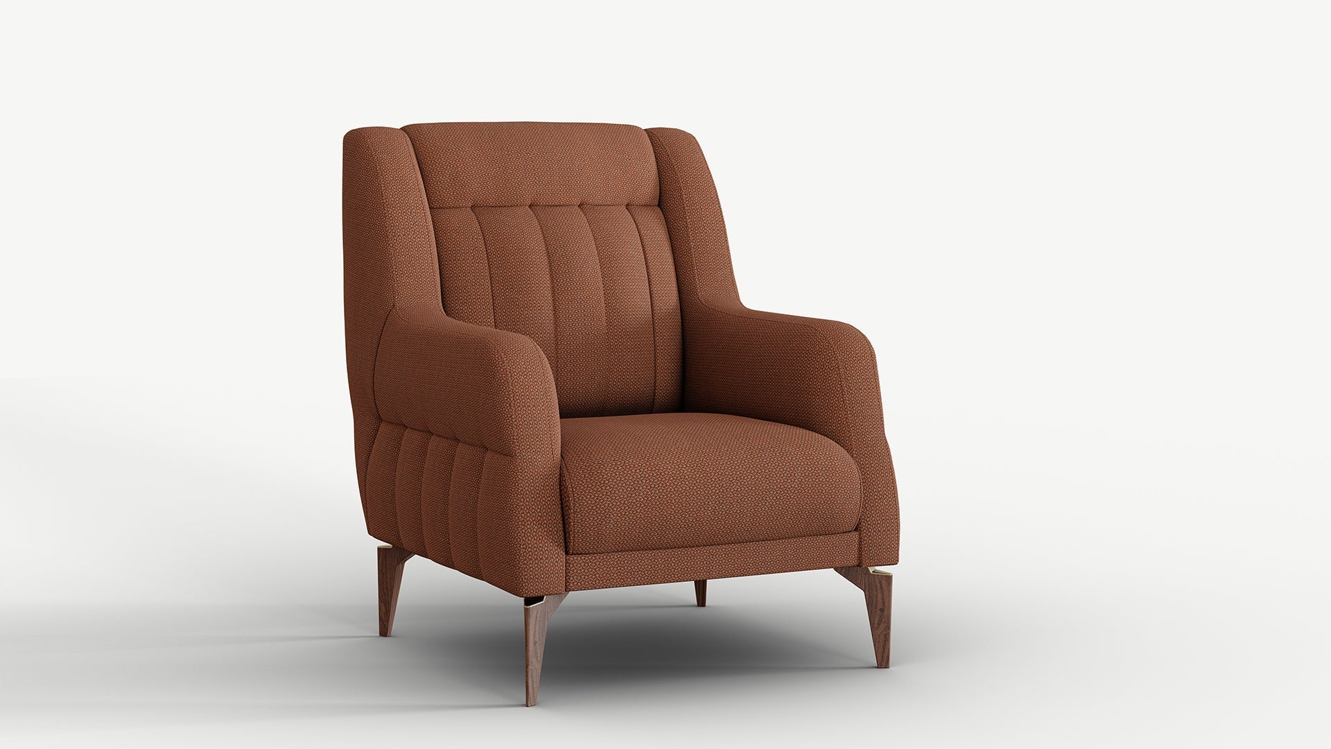 À la recherche d'un fauteuil élégant pour votre salon ? Découvrez le fauteuil Likya. Ce fauteuil orange saisissant personnalise votre intérieur grâce à ses surpiqûres, ses pieds en bois au design unique et ses fines lignes dorées. Découvrez-le dès maintenant !