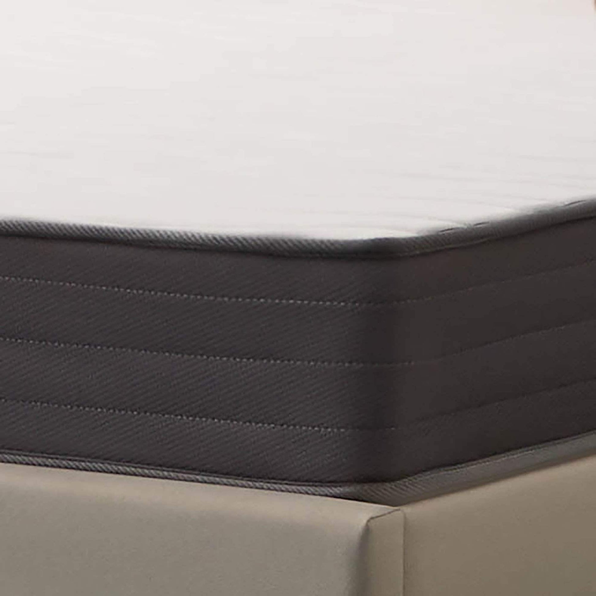- MISE À JOUR DU MATELAS : Nous sommes en train de mettre à jour l'apparence de nos matelas afin que vous puissiez recevoir un matelas blanc avec passepoil bleu ou un matelas blanc avec passepoil gris ; dans tous les cas, vous bénéficierez du même confort hybride en mousse à mémoire de forme douce et de soutien