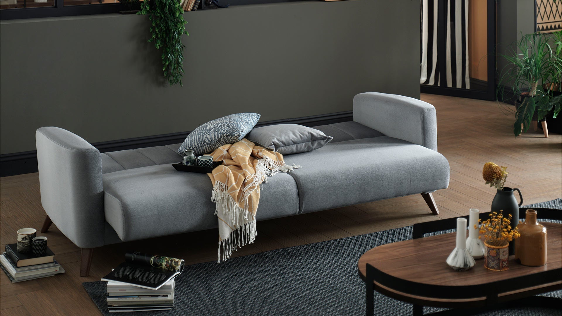 - Nombre de places : 3 places, Largeur : 89', Profondeur : 32,7', Hauteur : 30,7', Largeur d'assise : 75,6', Profondeur d'assise : 24', Hauteur d'assise : 16,9', Hauteur du dossier : 17,3', Largeur des accoudoirs : 5,1', Hauteur des accoudoirs : 18,5', Fonction lit : Oui, Largeur du lit : 75,6', Profondeur du lit : 42,1', Matériau des pieds : Plastique, Couleur des pieds : Noyer, Hauteur des pieds : 5,9',