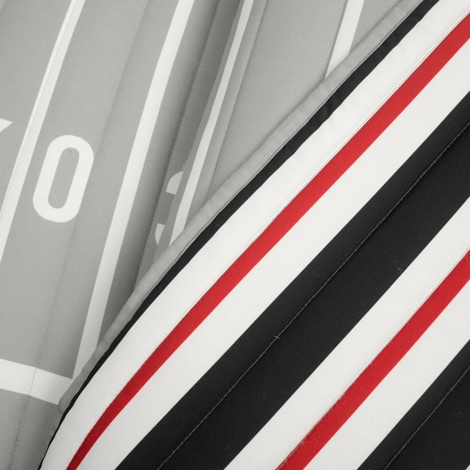 Touchdown ! Modernisez la chambre de votre enfant avec cette parure de lit amusante et graphique sur le thème du football. Cette parure de lit est parfaite pour les joueurs ou les passionnés de football. Avec son motif rayé réversible et ses coussins décoratifs, rien de tel pour afficher votre passion pour votre sport préféré. Cette parure comprend une couette, une taie d'oreiller et deux coussins décoratifs. Le garnissage 100 % polyester offre une couverture légère pour un confort optimal en toute saison. Veuillez consulter l'étiquette pour les instructions d'entretien complètes.