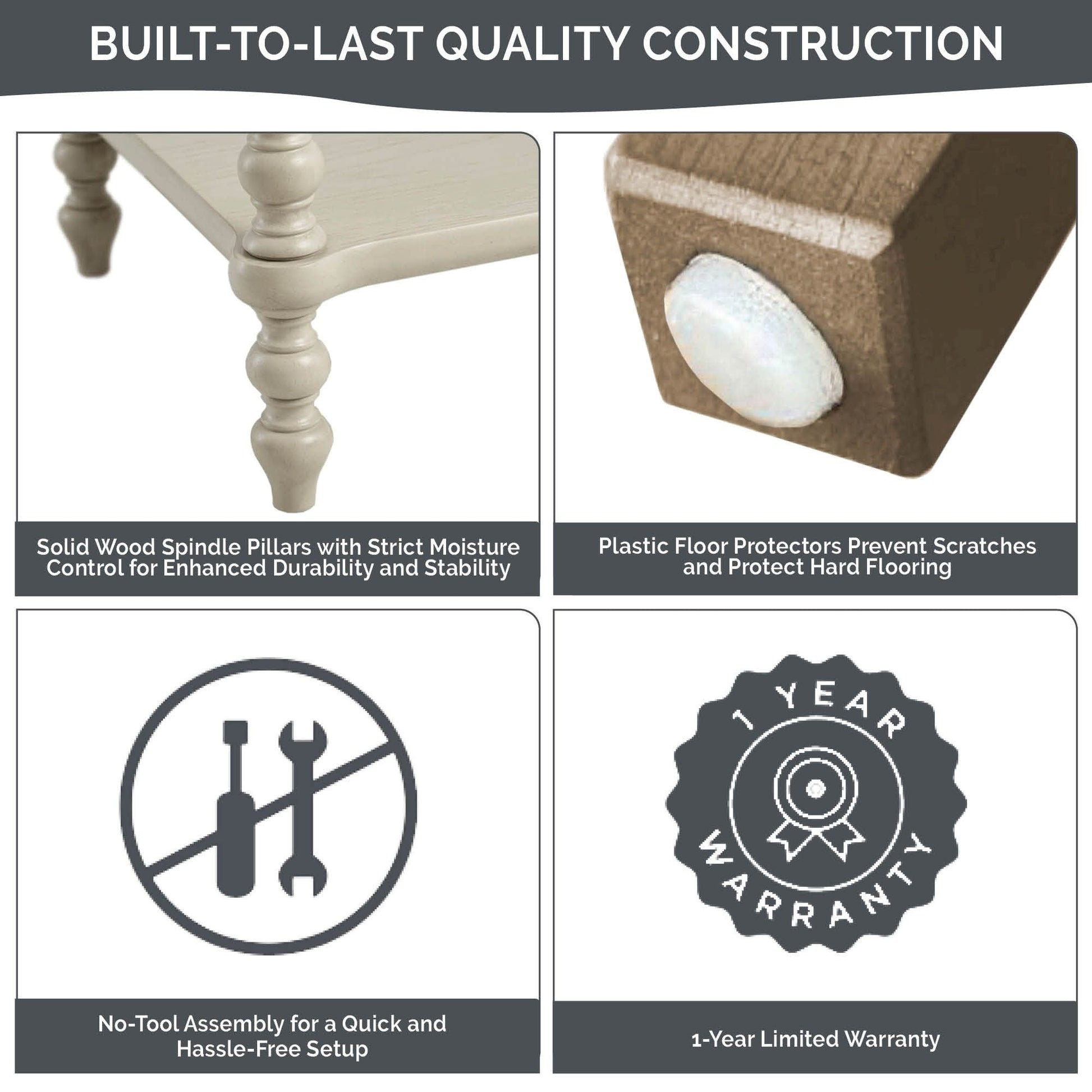- Design intemporel avec pieds en fuseau tournés, complétant les intérieurs d'inspiration traditionnelle et vintage