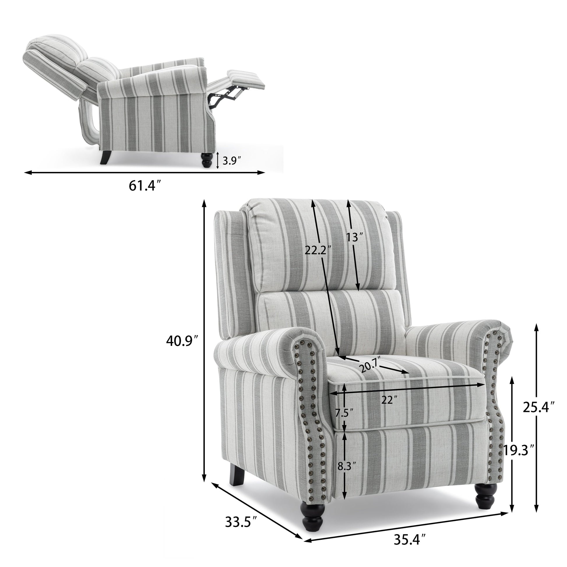 Sublimez votre espace détente avec ce fauteuil inclinable élégant et polyvalent, conçu pour allier style et confort. Son mécanisme d'inclinaison fluide, parfaitement contrôlé par le corps et les pieds, vous permet de trouver facilement la position idéale pour une détente totale. Rembourré de mousse haute densité au niveau de l'appuie-tête, des lombaires, du dossier et des accoudoirs, il offre un soutien complet du corps et soulage la pression pendant que vous vous détendez. Que vous regardiez la télévision, lisiez ou fassiez une sieste, ce fauteuil inclinable offre l'équilibre idéal entre confort et style. Deux options haut de gamme sont disponibles : un similicuir lisse pour une finition moderne et facile d'entretien, ou un tissu en lin confortable aux motifs floraux ou rayés, apportant une touche décorative et chaleureuse, idéal pour une esthétique plus dynamique ou traditionnelle. Avec ses finitions cloutées et son large choix de couleurs et de motifs, il s'intègre parfaitement à tout salon, bureau ou étude, faisant de lui à la fois une solution d'assise fonctionnelle et une pièce maîtresse élégante pour votre intérieur.