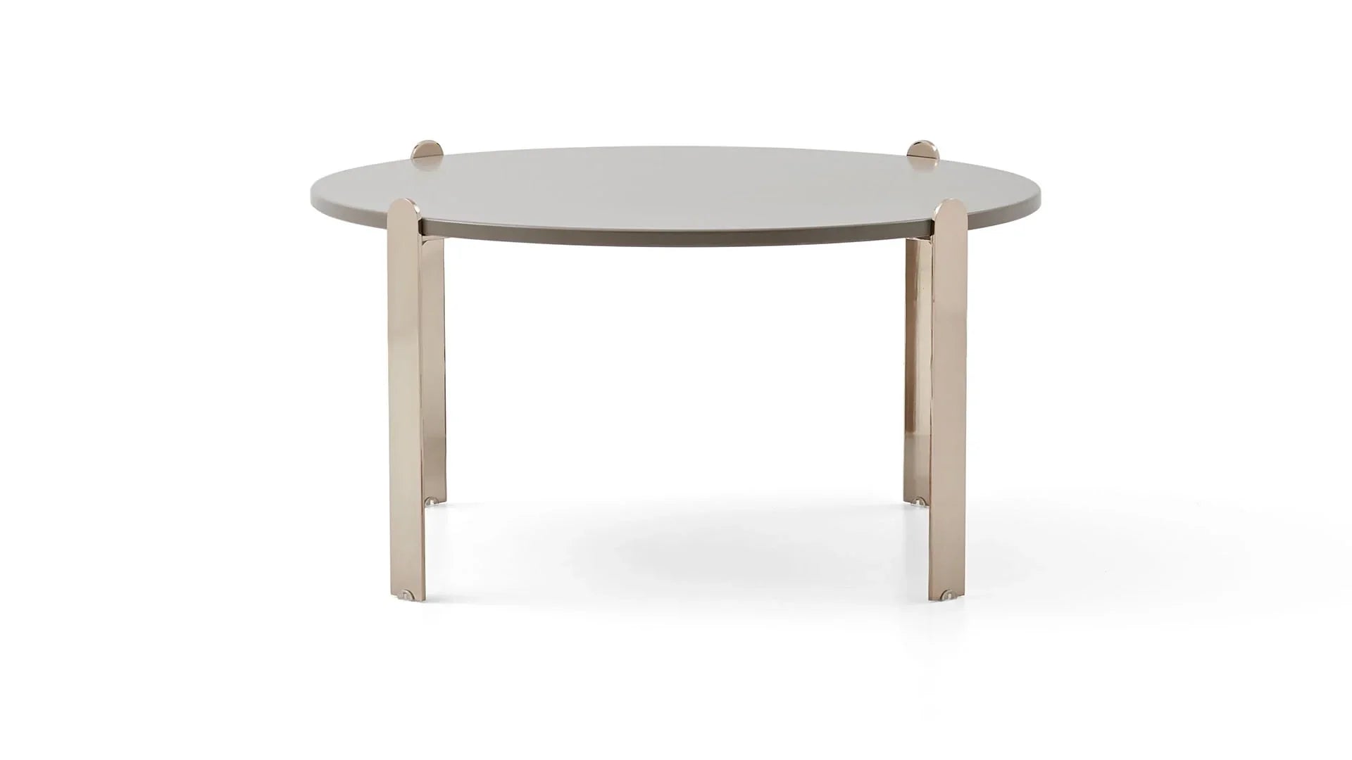 La table basse Meda apporte une touche unique et moderne à votre espace de vie. Dotée d'un plateau rond et d'une structure à quatre pieds, cette élégante table sublime votre décoration grâce à des détails luxueux, des matériaux de qualité et des couleurs sophistiquées. De son design épuré à ses pieds en métal bronze, chaque élément de la table basse Meda contribue à un intérieur élégant et haut de gamme.