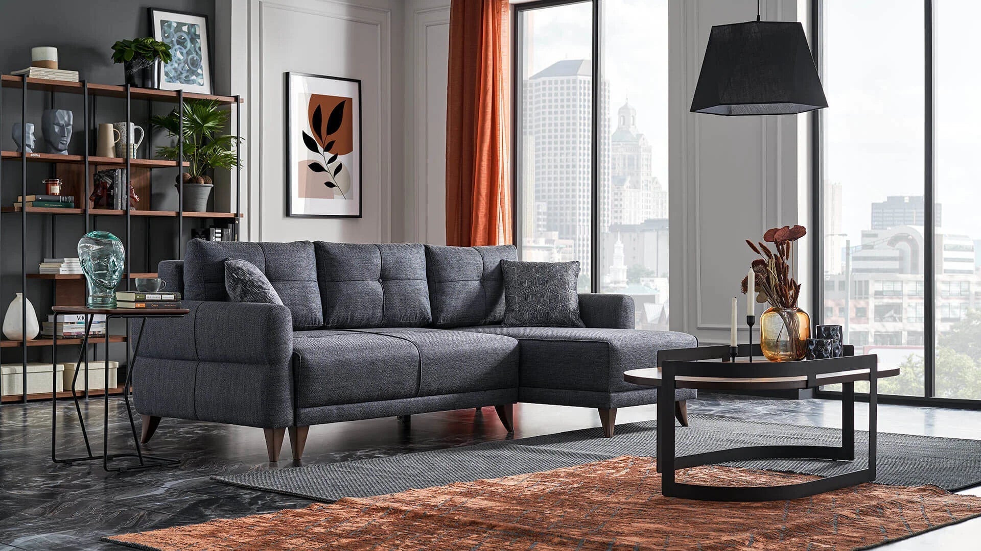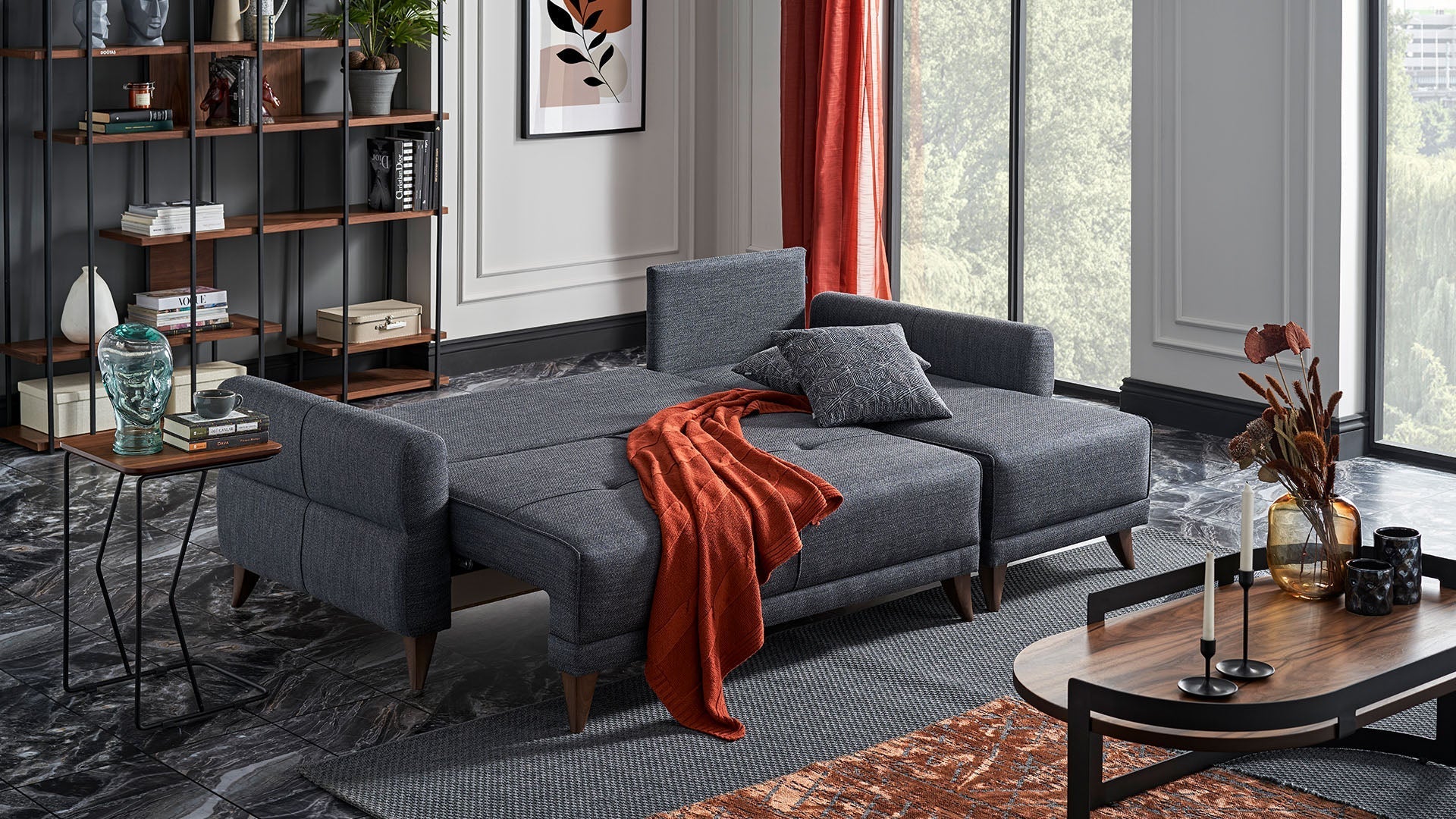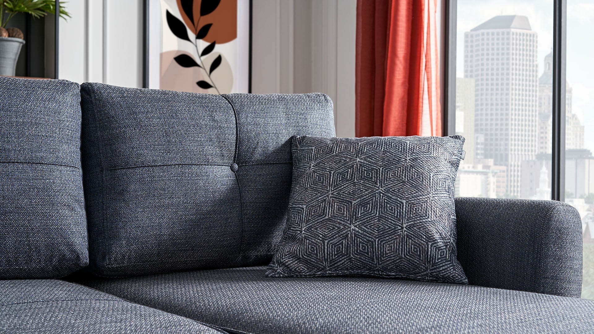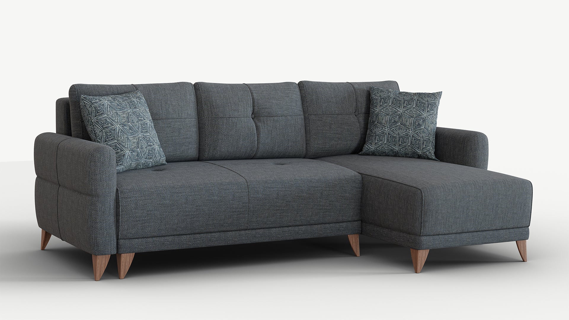 L'ensemble d'angle Mila transforme les espaces étroits en espaces élégants et fonctionnels, sublimant son design moderne et minimaliste par des détails fonctionnels. Les coutures des coussins d'assise, d'accoudoirs et de dossier ajoutent du mouvement à l'ensemble, s'inspirant des tendances actuelles avec des tissus en lin aux coloris variés et des coussins à motifs géométriques. Il offre également des lits doubles pour les invités et un espace de rangement supplémentaire. À découvrir dès maintenant !