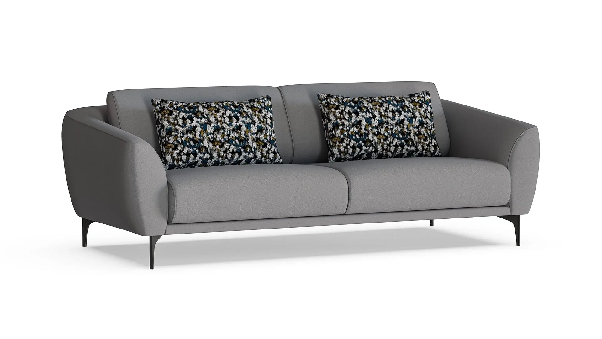 Le canapé trois places Nevada allie lignes épurées et confort moderne, ce qui en fait la pièce maîtresse idéale des salons contemporains. Doté d'un doux tissu à la texture velours gris et de pieds en métal noir mat, il offre un soutien exceptionnel grâce à son mécanisme de dossier réglable, idéal pour ceux qui privilégient le style et la fonctionnalité.