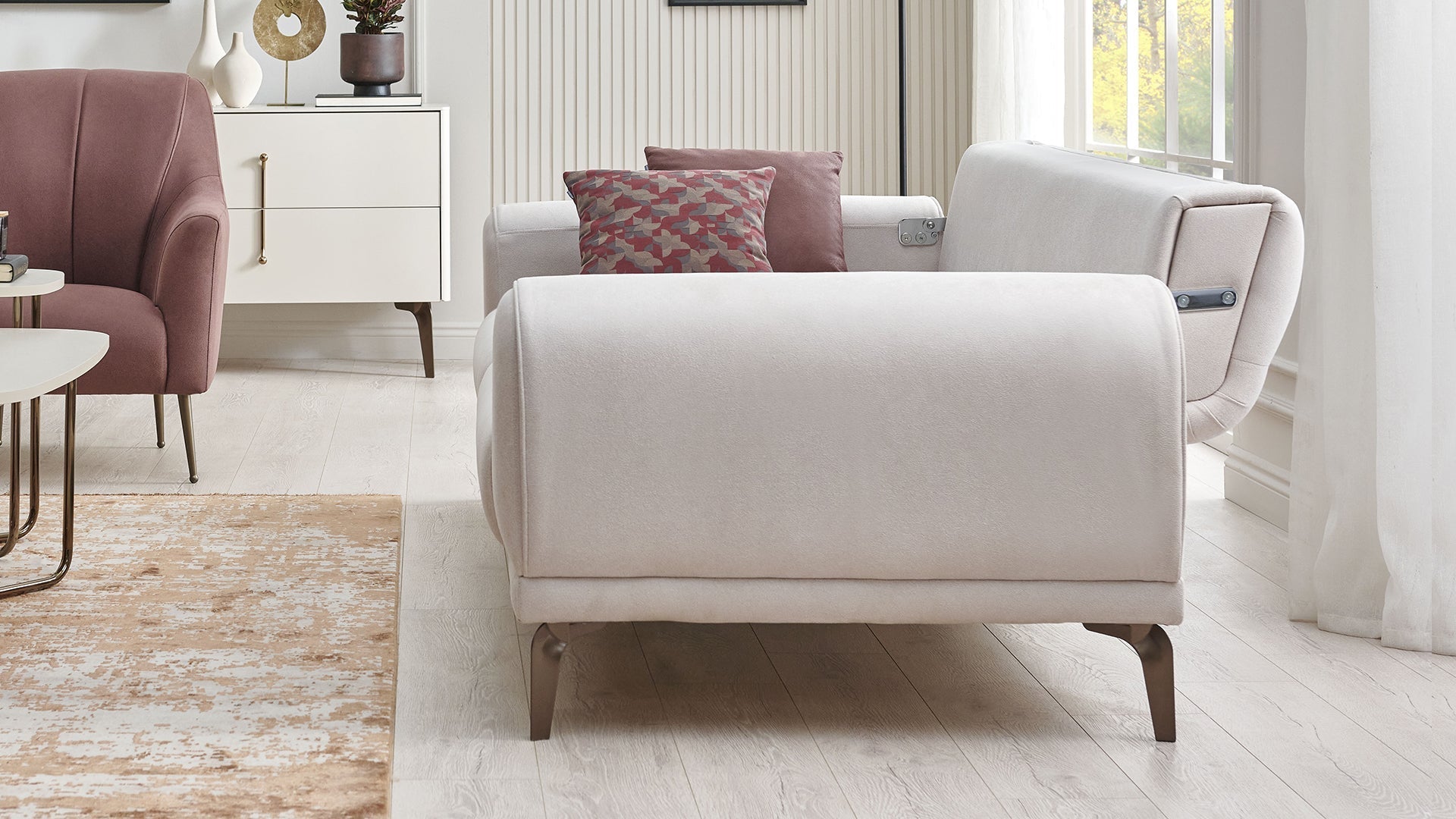 - Couleur du tissu : Prune/Crème, Tissu : Nubuck, Confort d’assise : Confort moelleux, Matériau du siège : 30 DNS Alta, Coussin de dossier : Non, Mécanisme : Mécanisme de dossier - Rouleau arrière