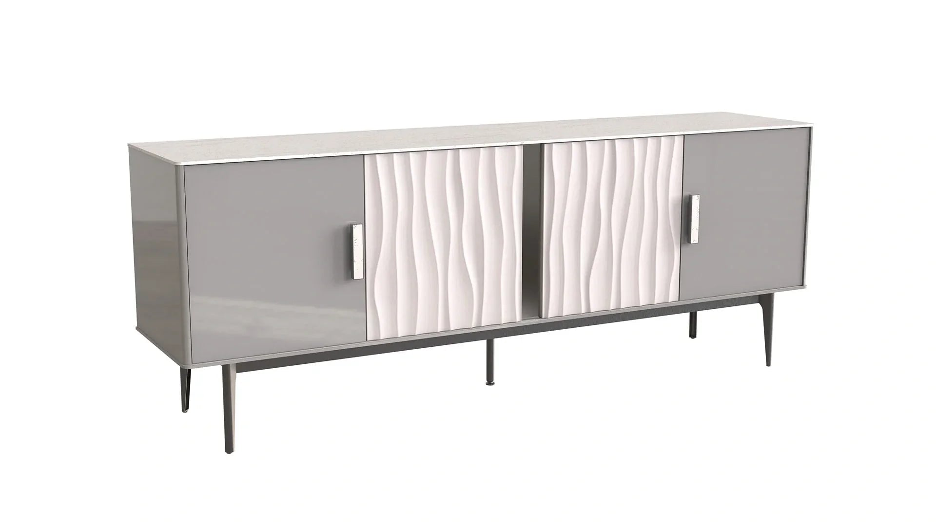 Doté de quatre compartiments spacieux , il offre un rangement idéal pour la vaisselle, les verres et autres essentiels de table que vous préférez dissimuler. Son design innovant allie des façades ondulées et plates , créant un effet dynamique et sculptural qui ajoute texture et attrait visuel à votre espace.
