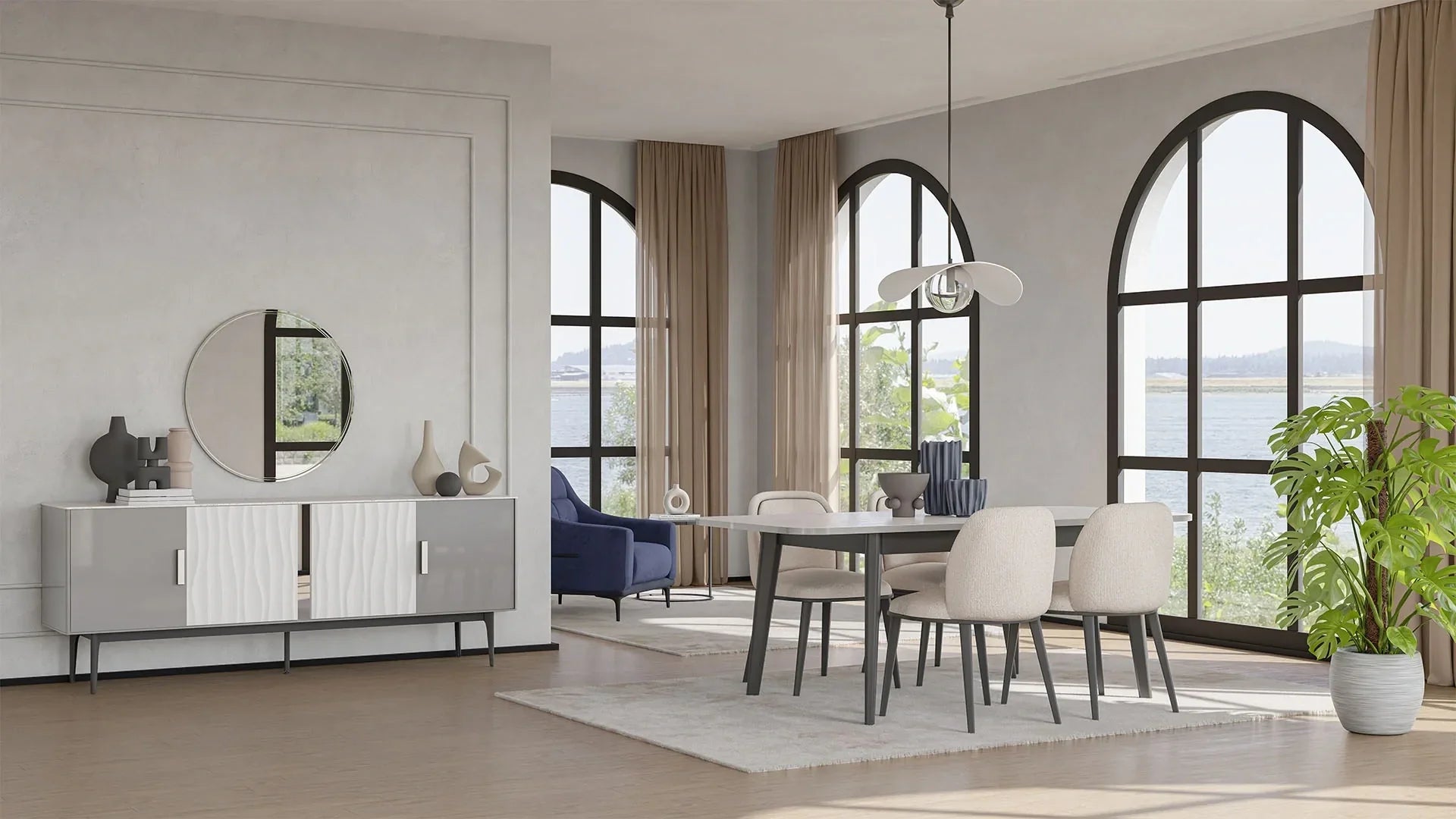Le buffet Nita allie parfaitement fonctionnalité et design haut de gamme, ce qui en fait un élément essentiel de toute salle à manger moderne. Conçu pour compléter l'élégance de la collection Nita , ce buffet offre un vaste espace de rangement et une esthétique unique.