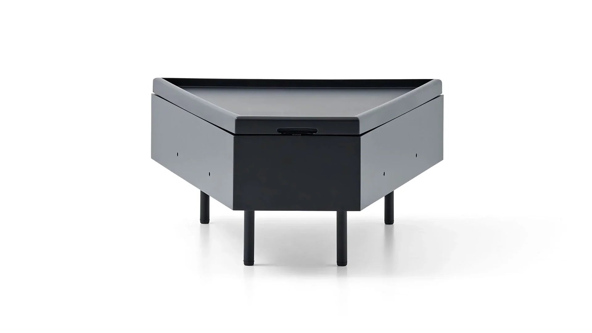 La table basse ottomane triangulaire Othello est une pièce multifonctionnelle conçue pour compléter la collection de canapés modulaires Othello. Ce module polyvalent fait à la fois office de table basse et de rangement, apportant une élégance fonctionnelle à votre espace de vie. Avec sa finition noire élégante et sa forme géométrique, il sublimera sans effort les intérieurs modernes.